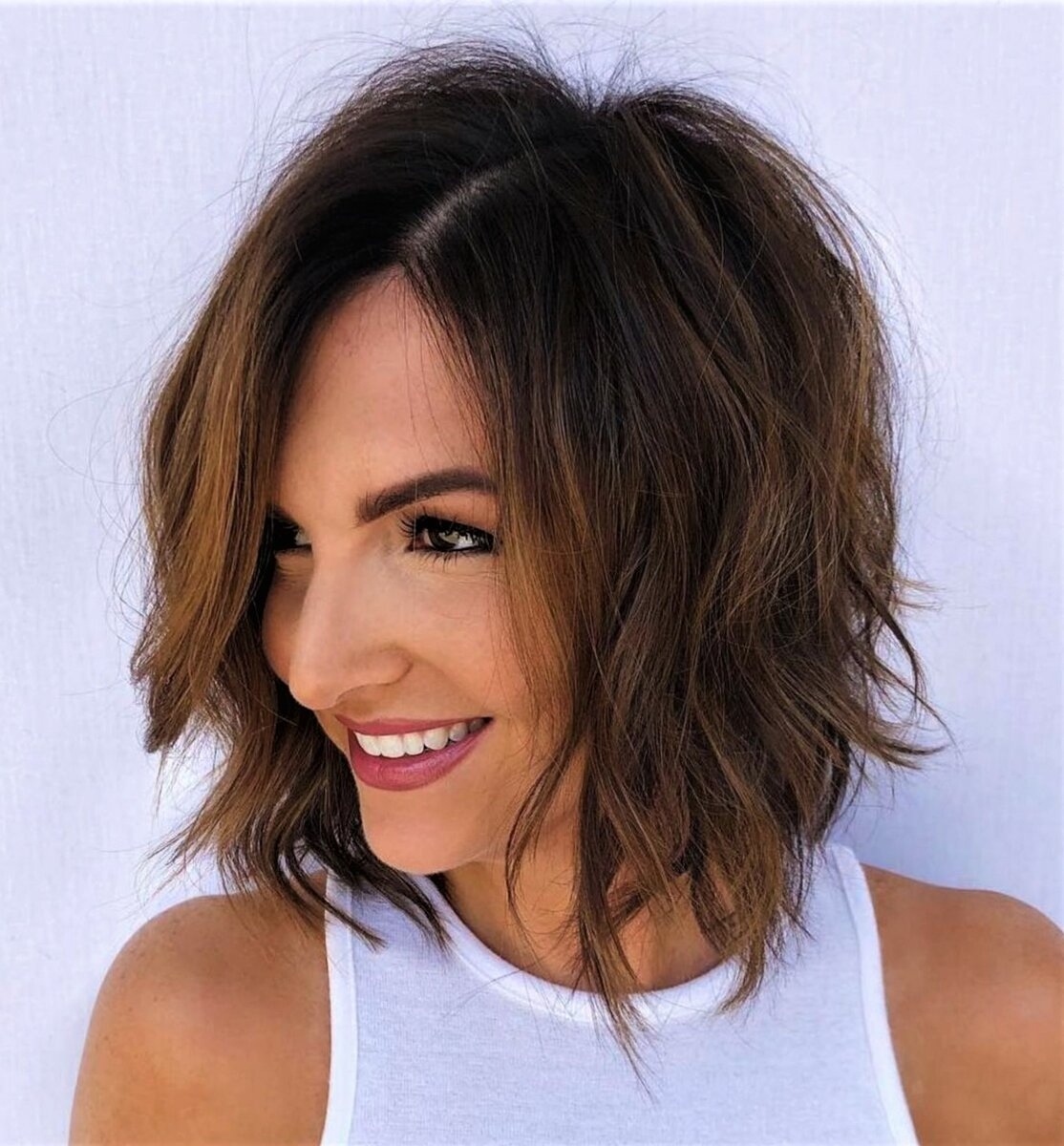 Стрижка Боб Каскад на средний волнистый волос