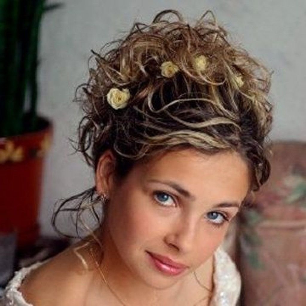 Причёска на свадьбу на средние кудрявые волосы