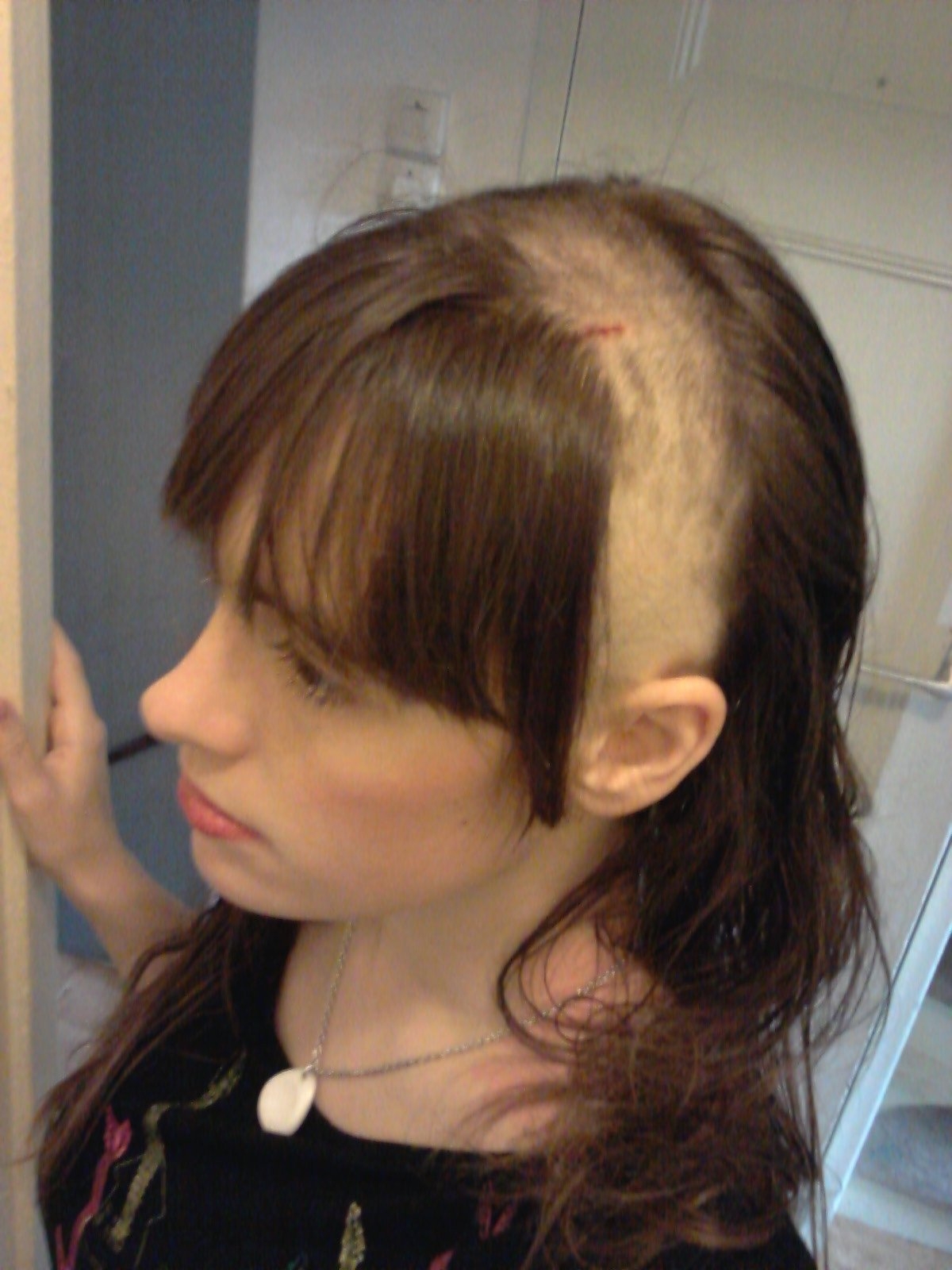Выбритый висок на длинные волосы