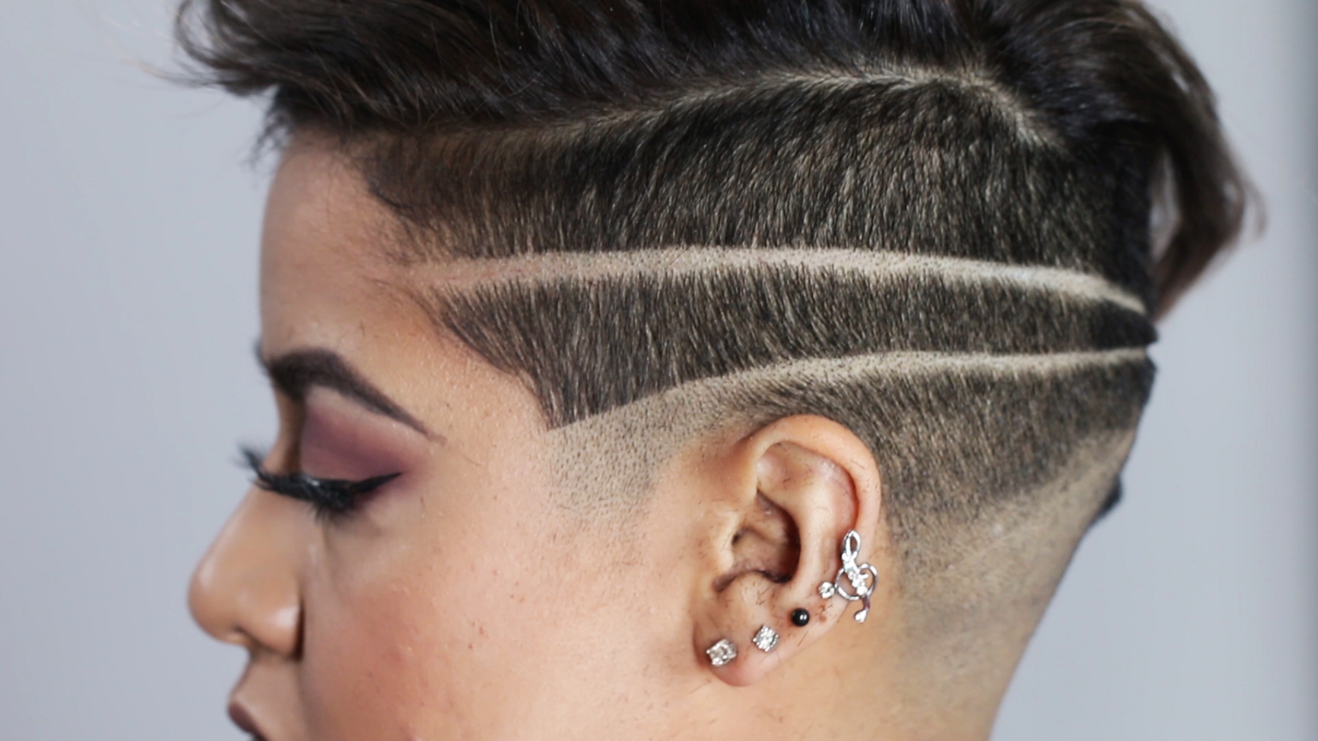 Женские полоски на выбритых висках