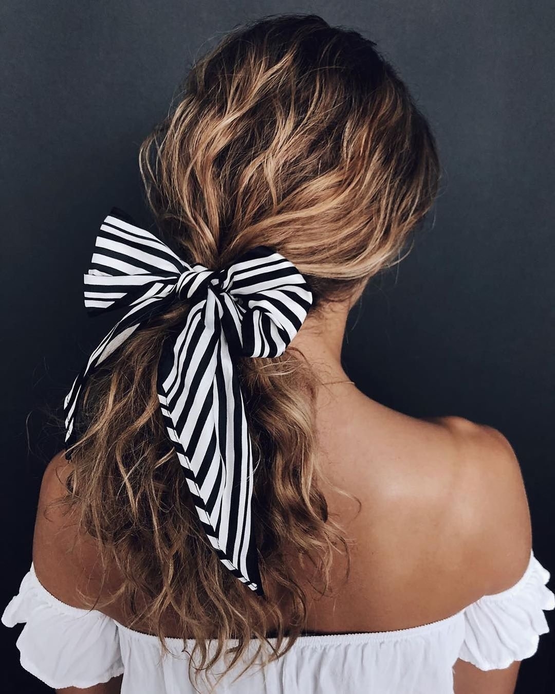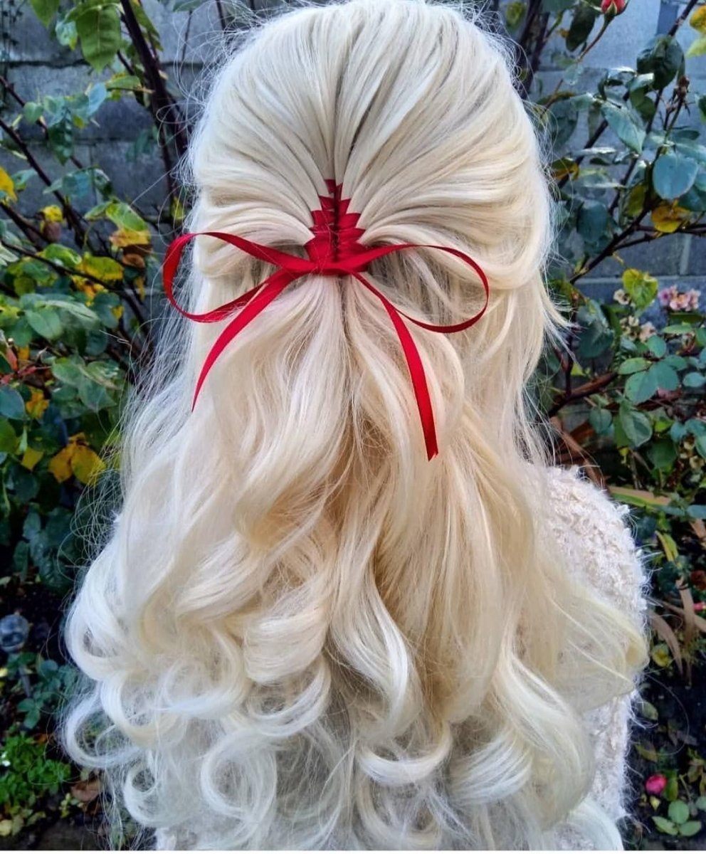 Прическа с ленточкой в волосах