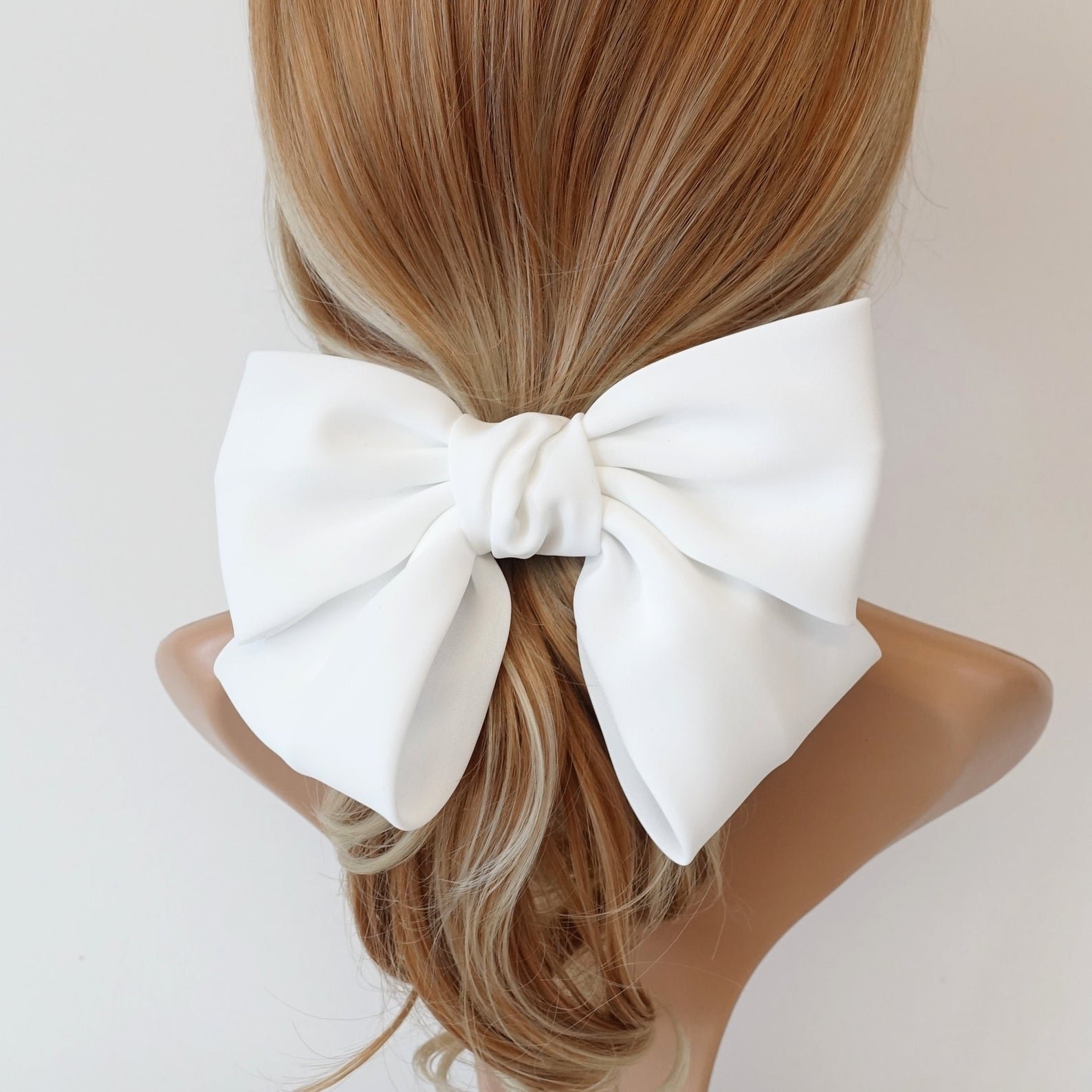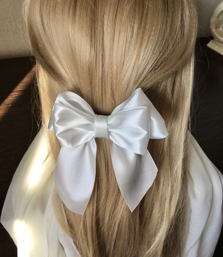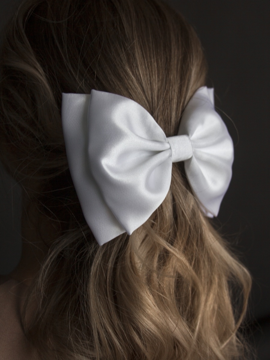 Белый атласный бант на волосах