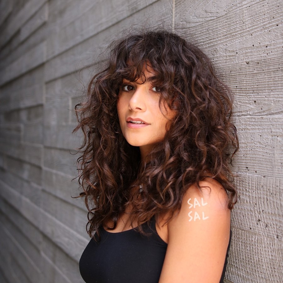Стрижка на длинные вьющиеся волосы с челкой