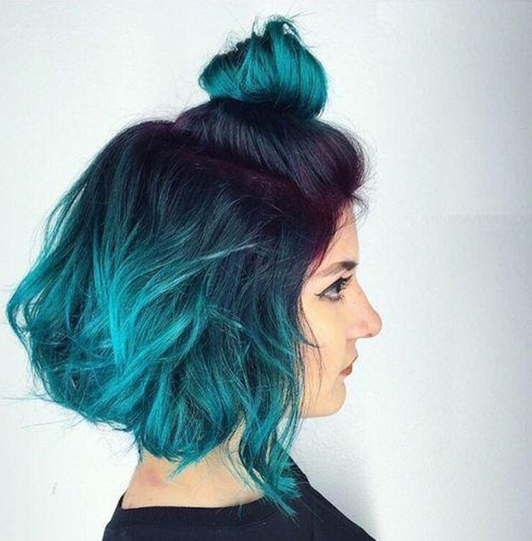 Окрашивание средней длины волос в синий