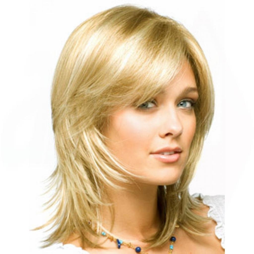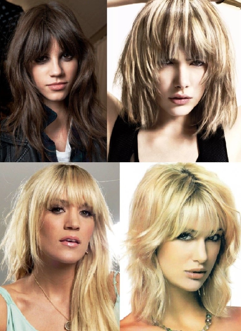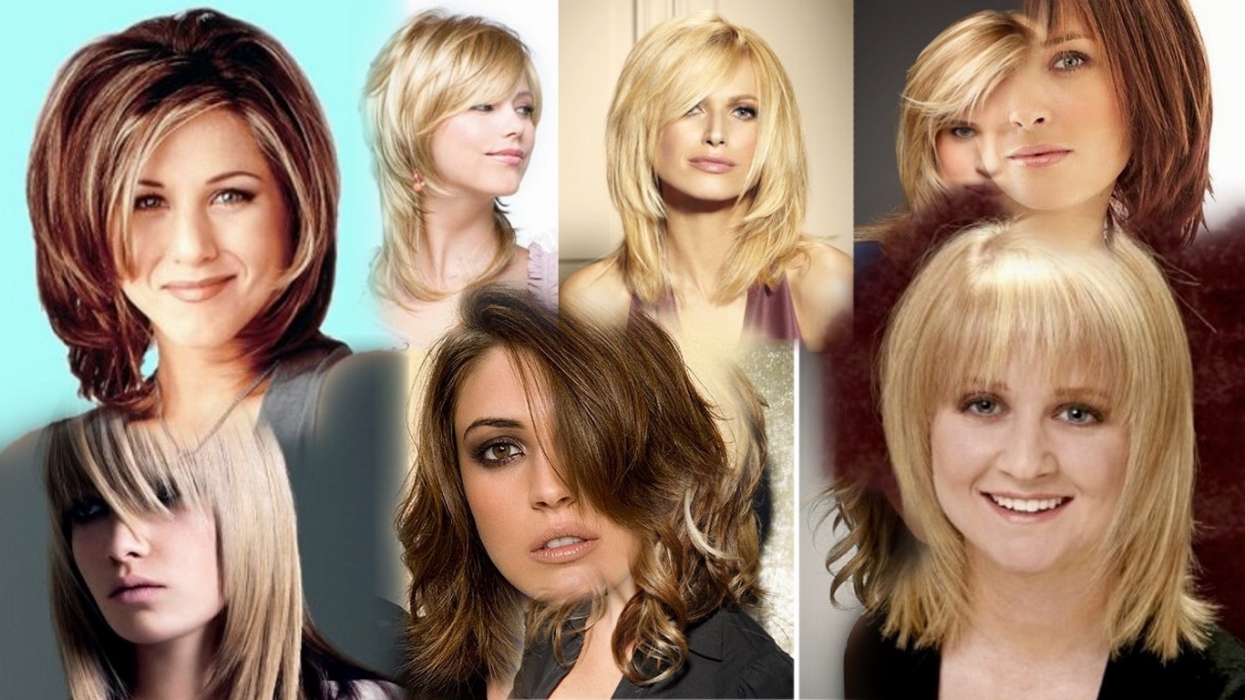 Стрижка каре Каскад на средние волосы с челкой для круглого лица