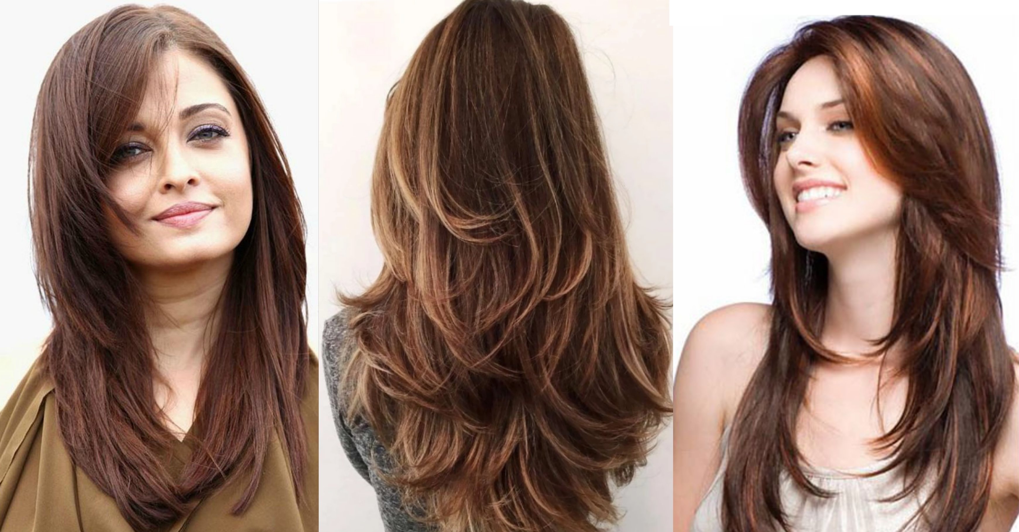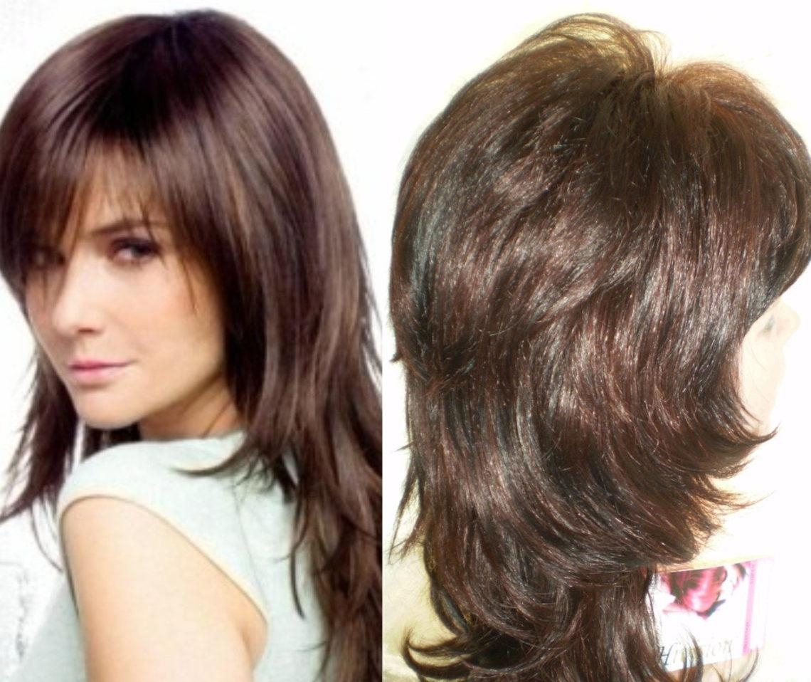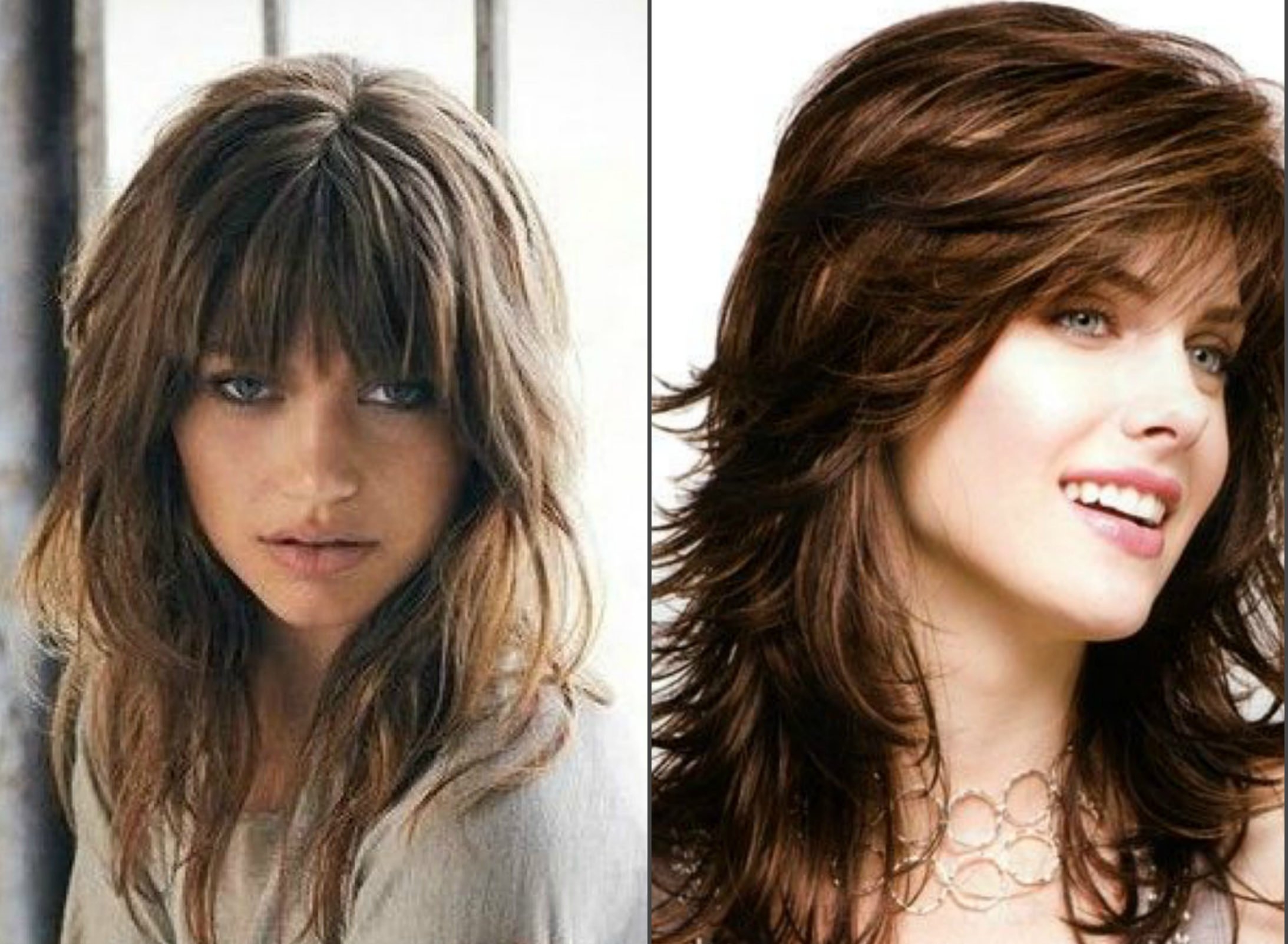 Стрижка Каскад лесенка на длинные волосы с челкой после 40