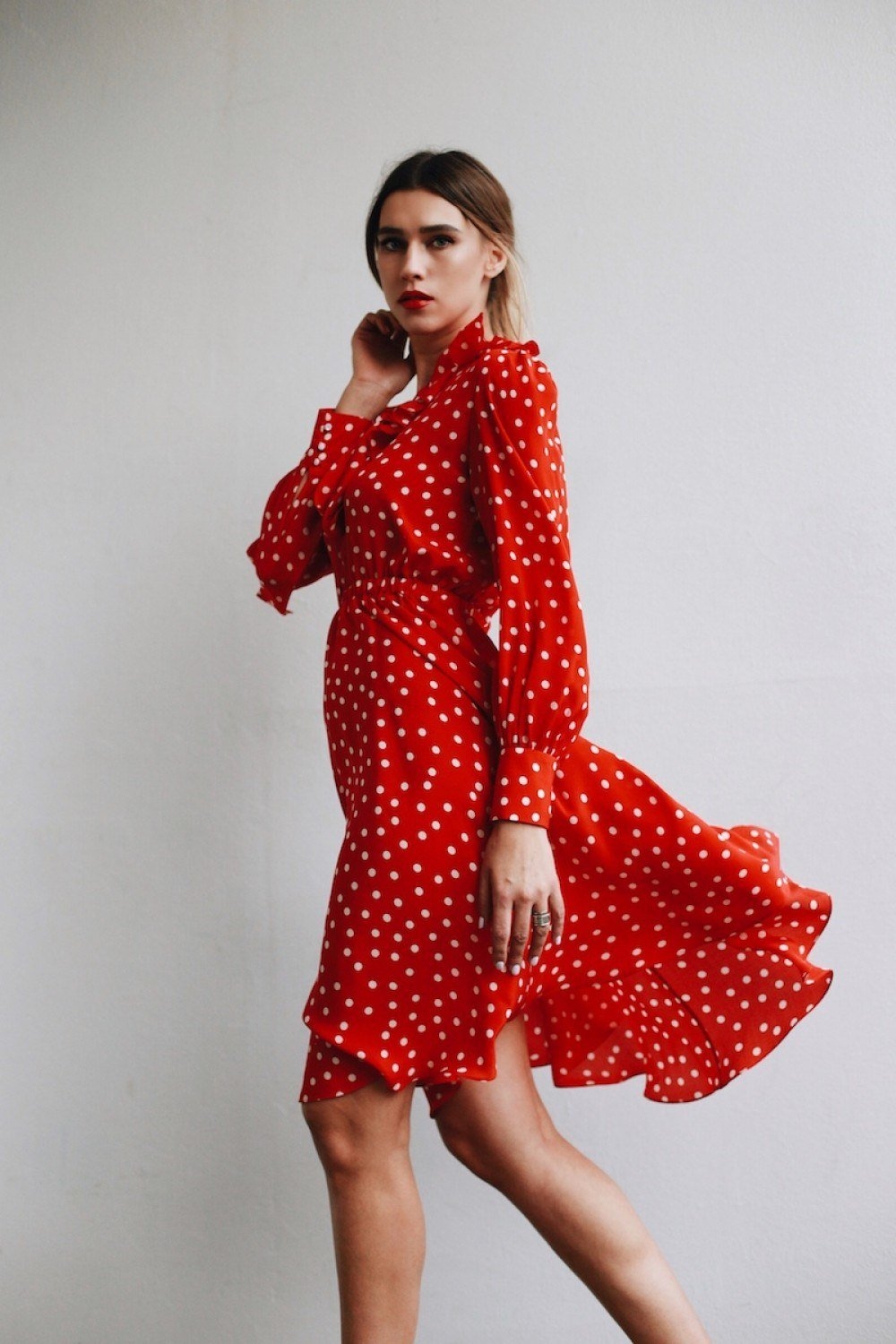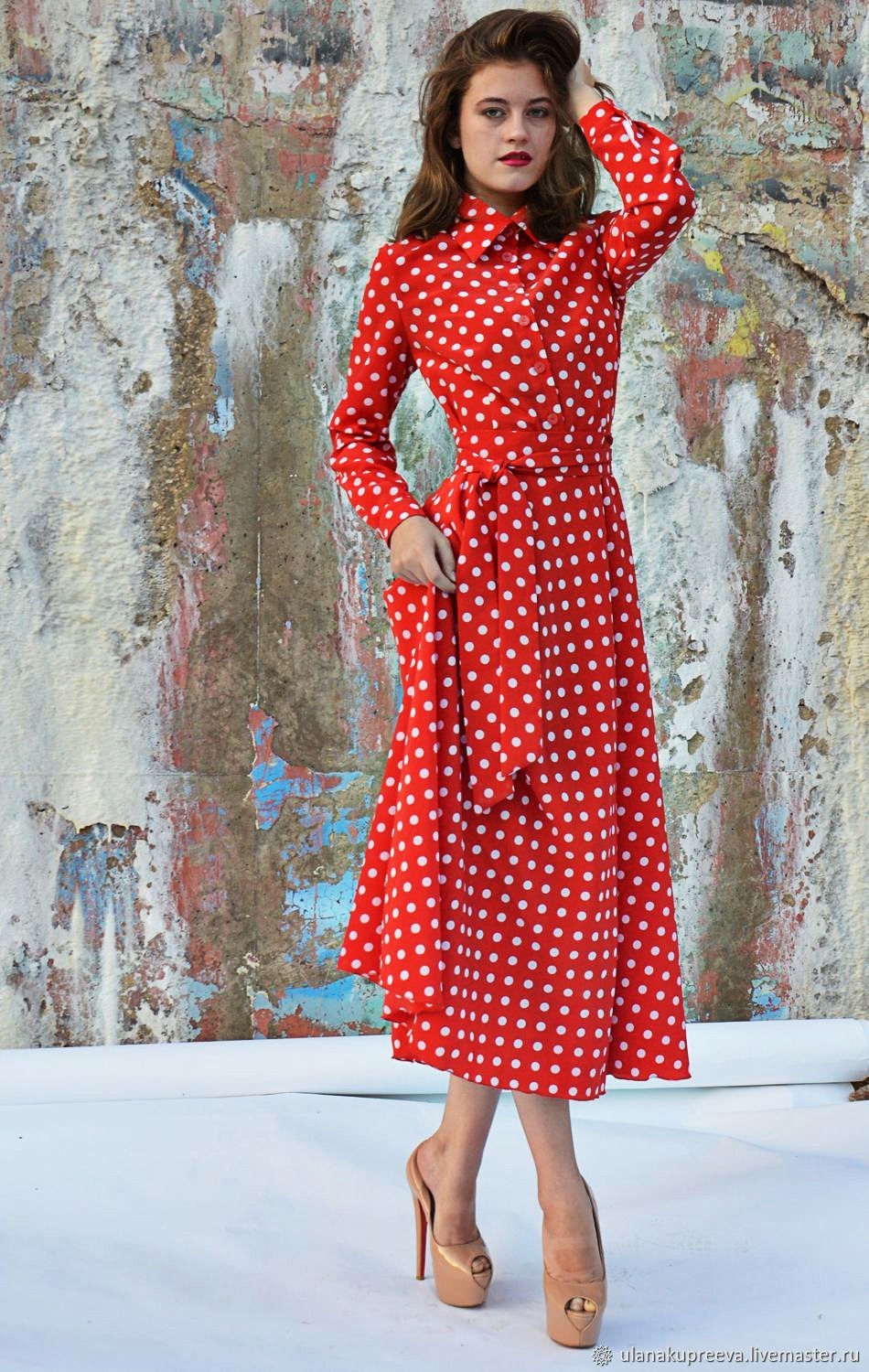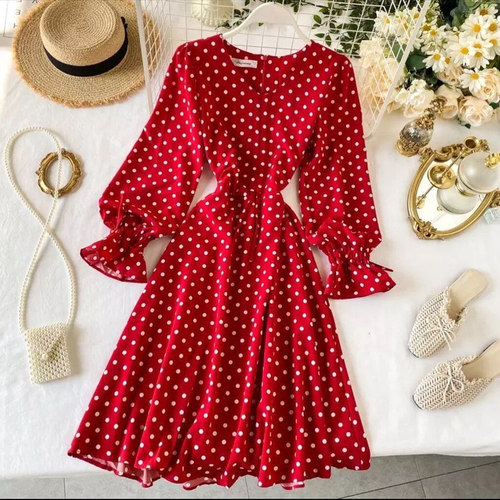 Красное платье в горошек