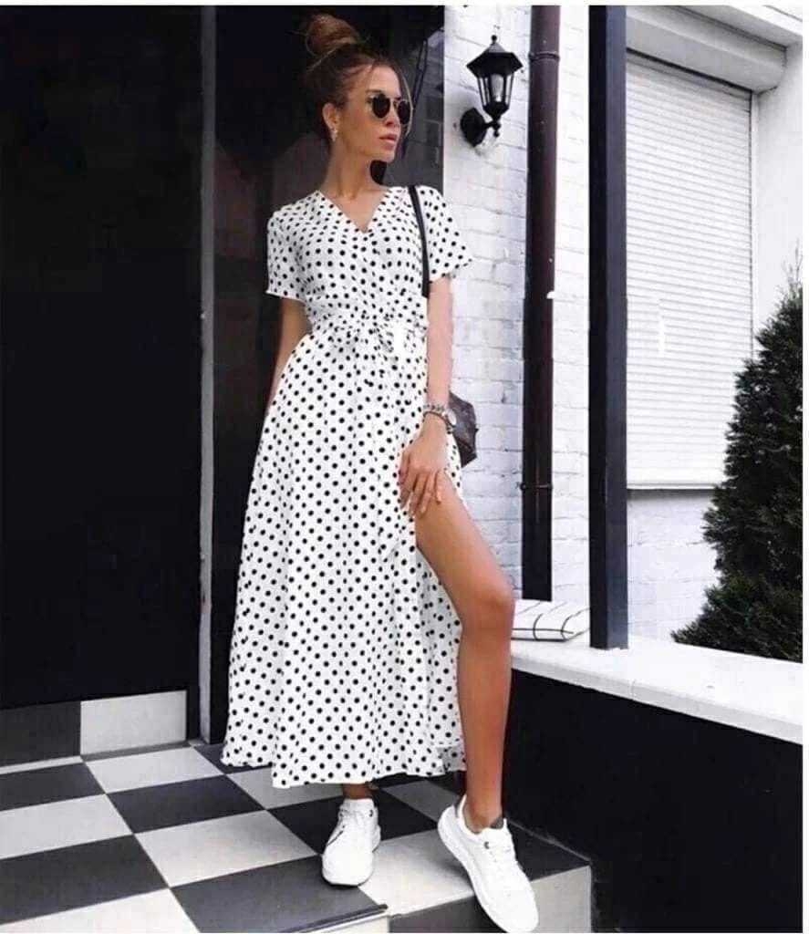 Длинное платье в горошек