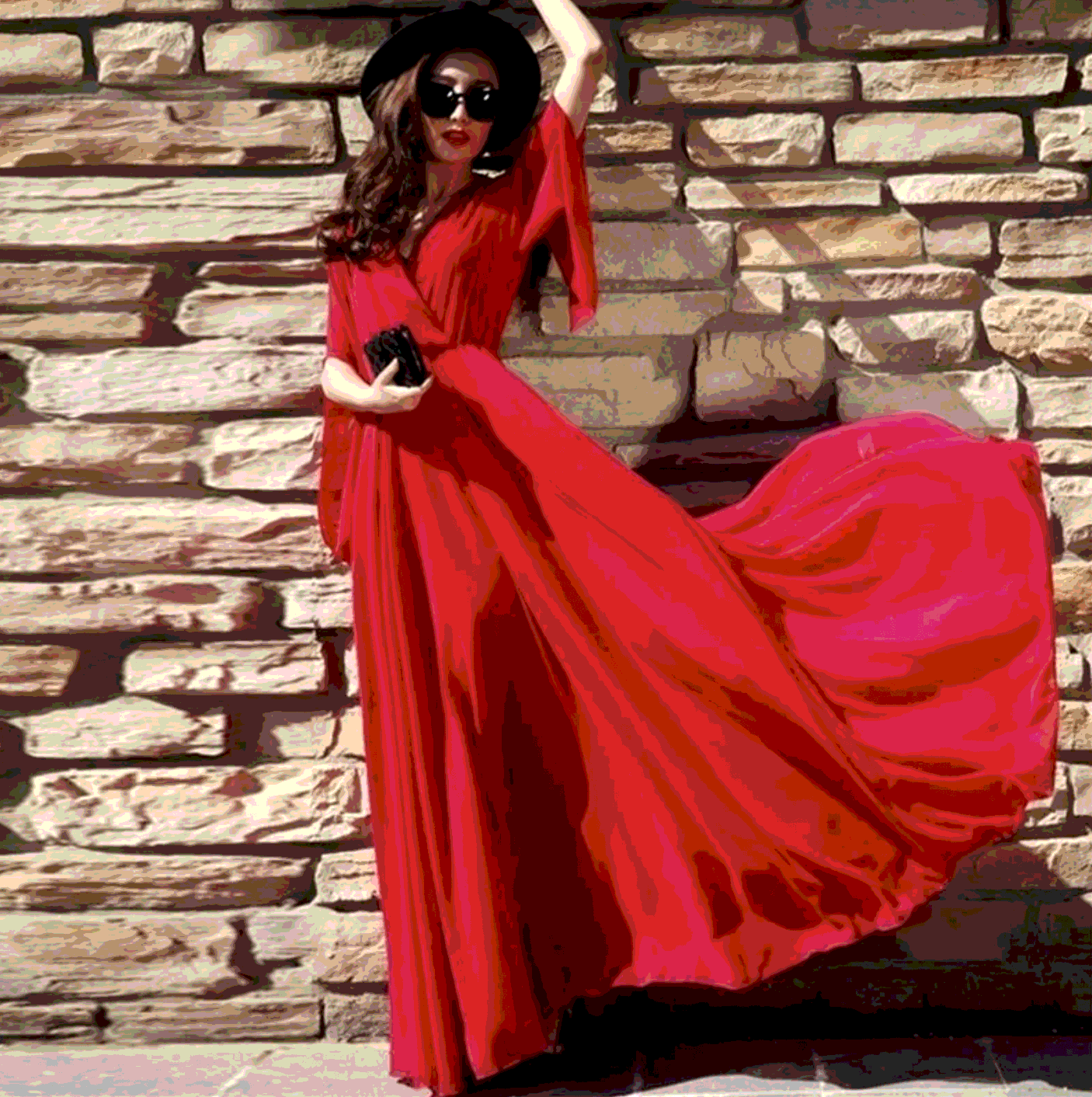 Модное красное платье