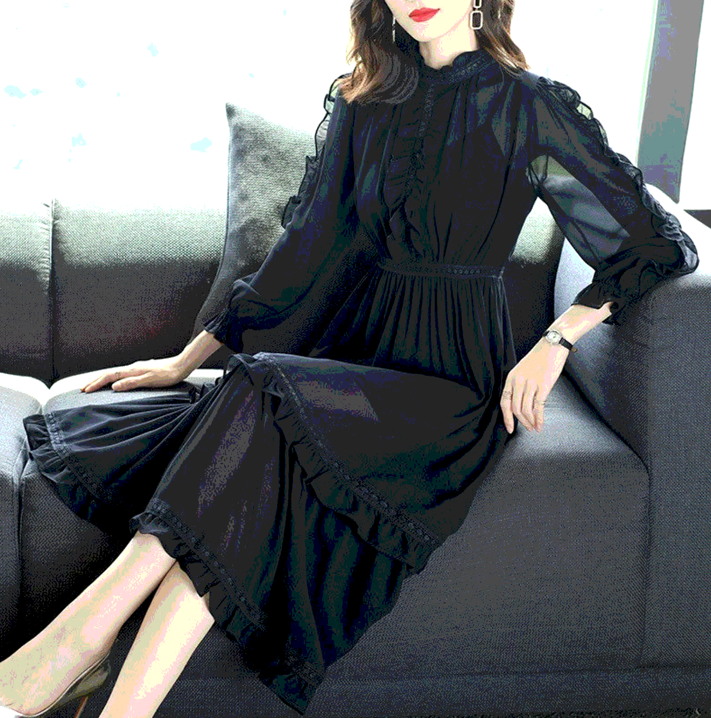 Черное шифоновое платье