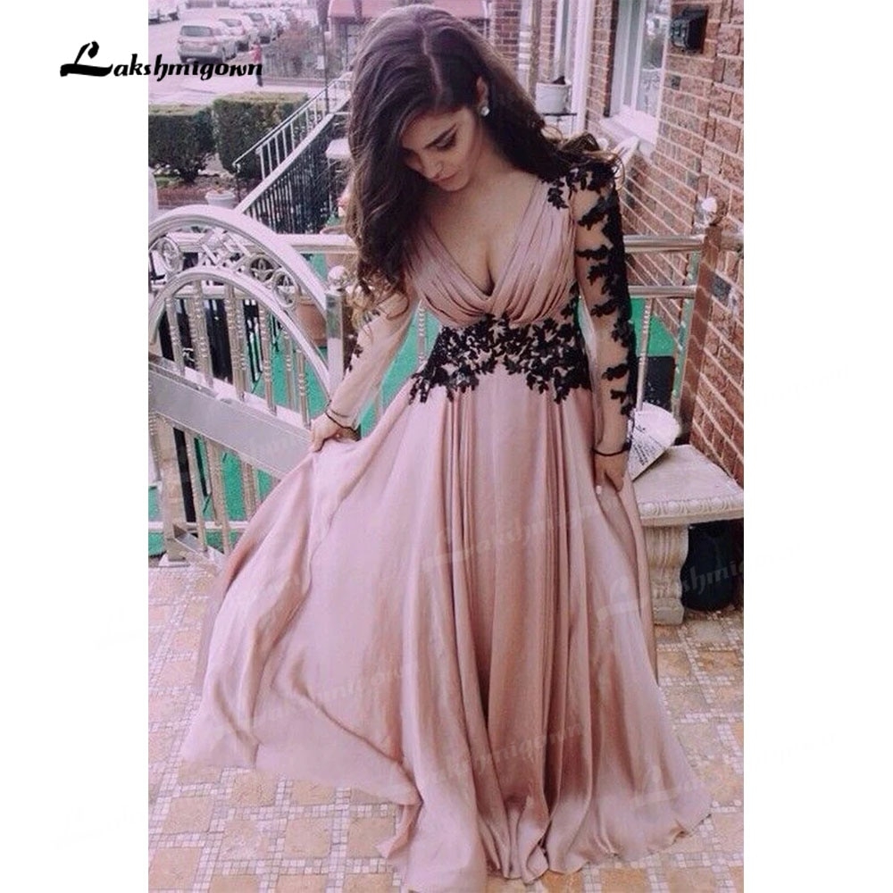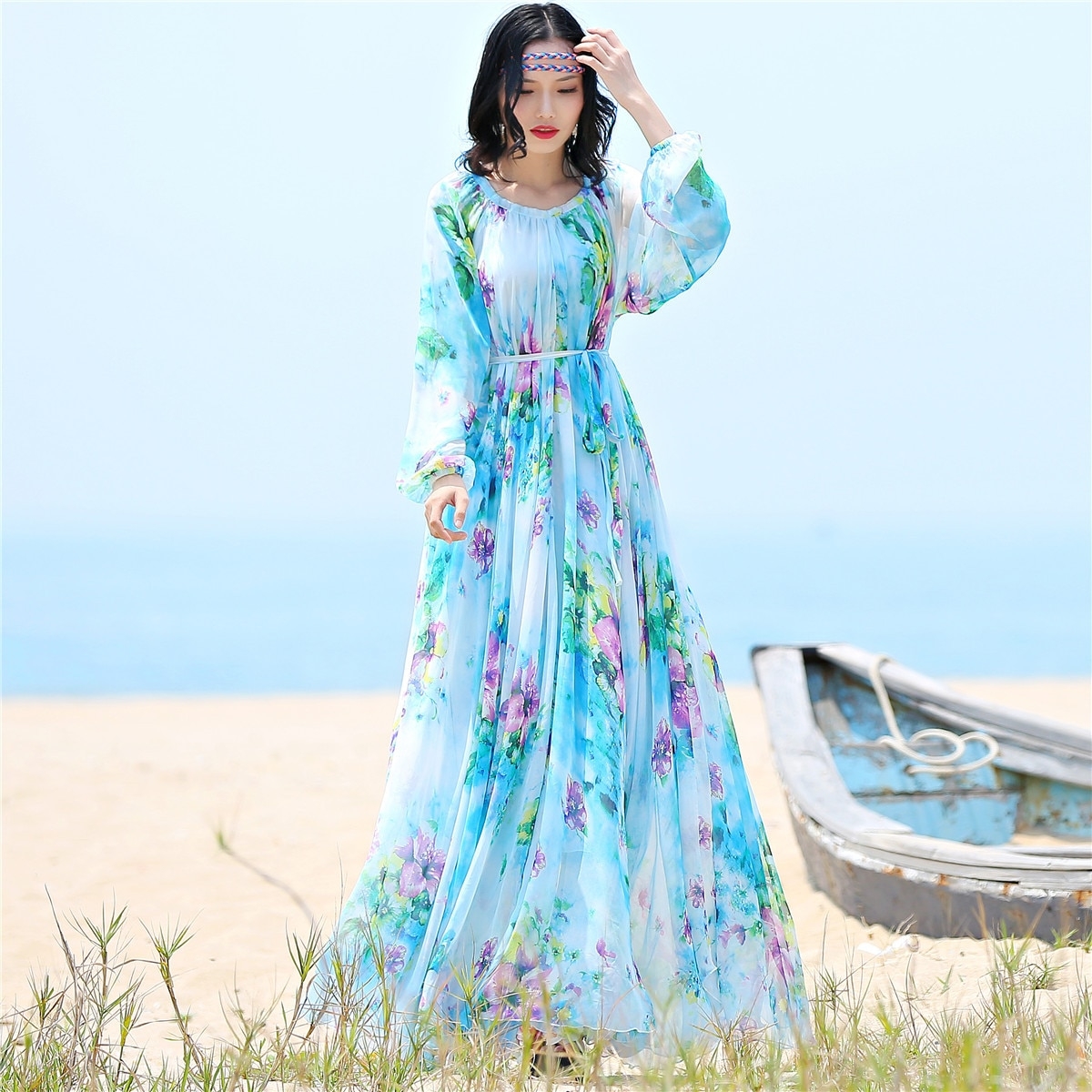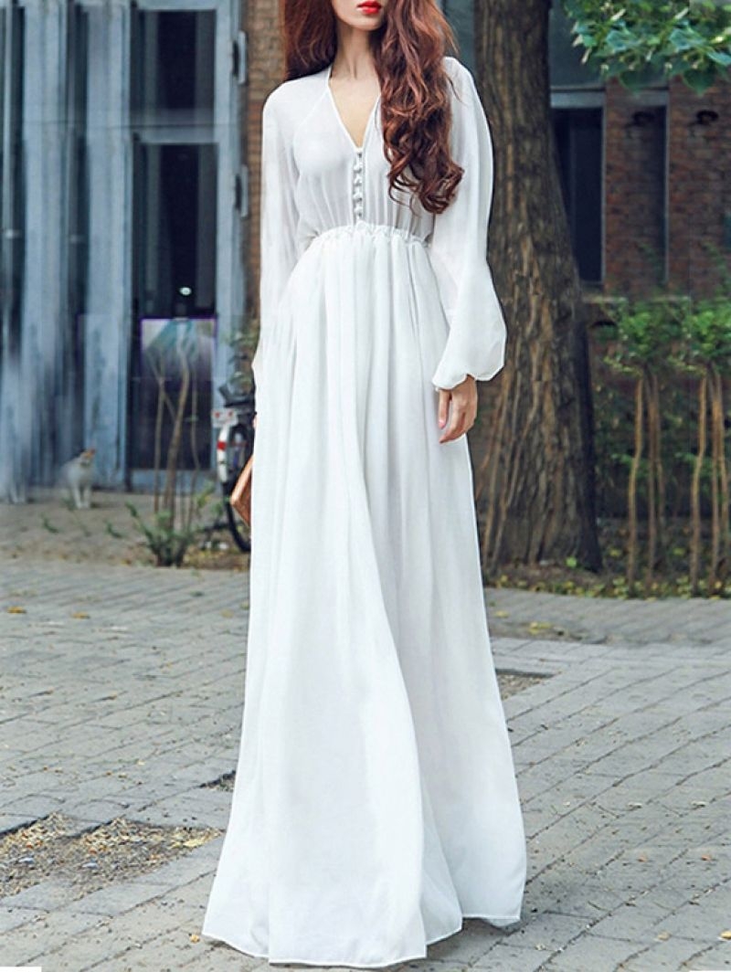 Длинное шифоновое платье с длинным рукавом