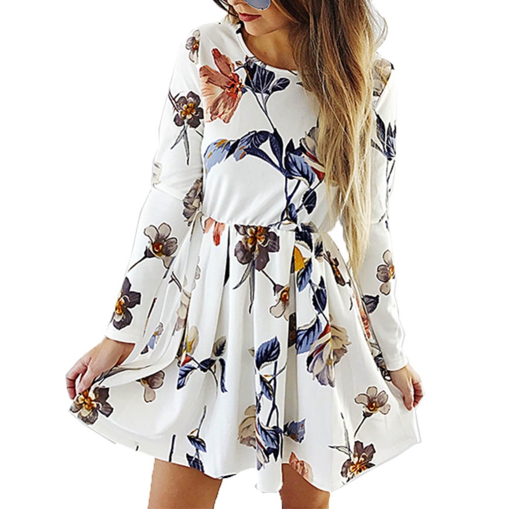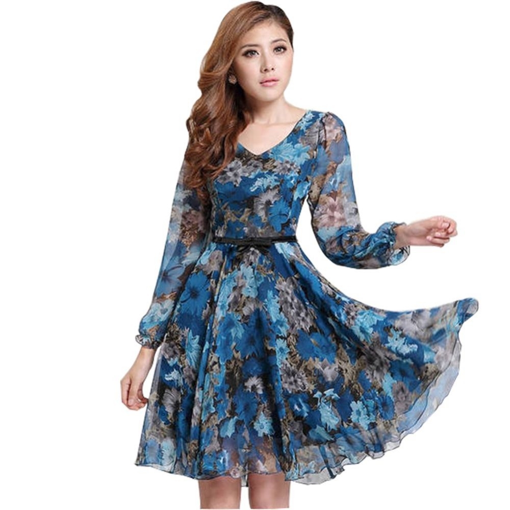 Шифоновое платье с цветочным принтом с длинным рукавом