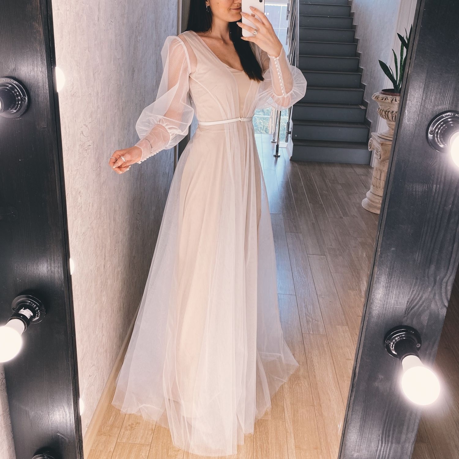 Свадебное платье с фатиновыми рукавами