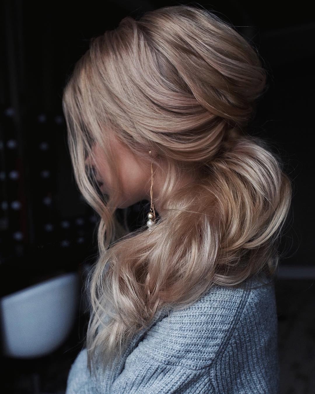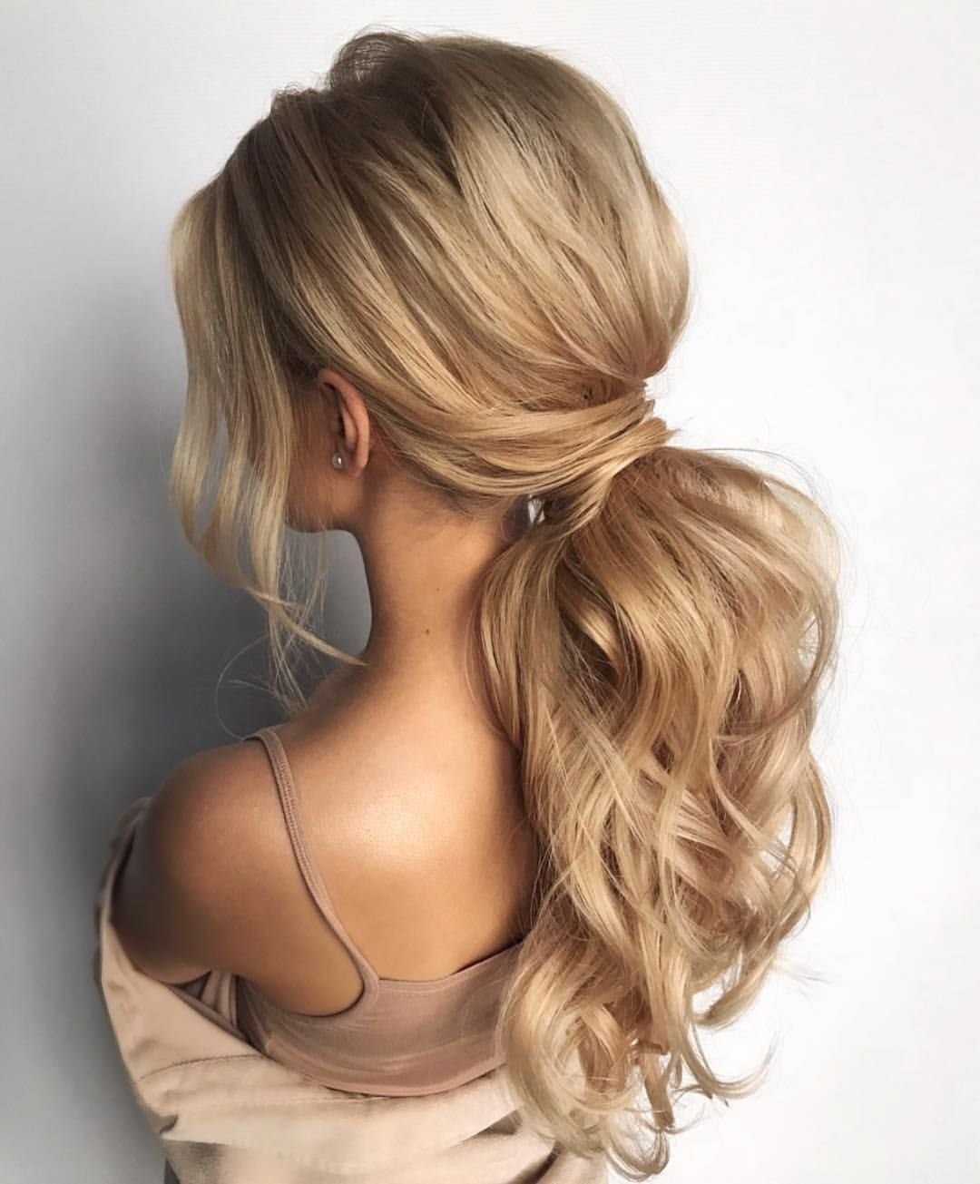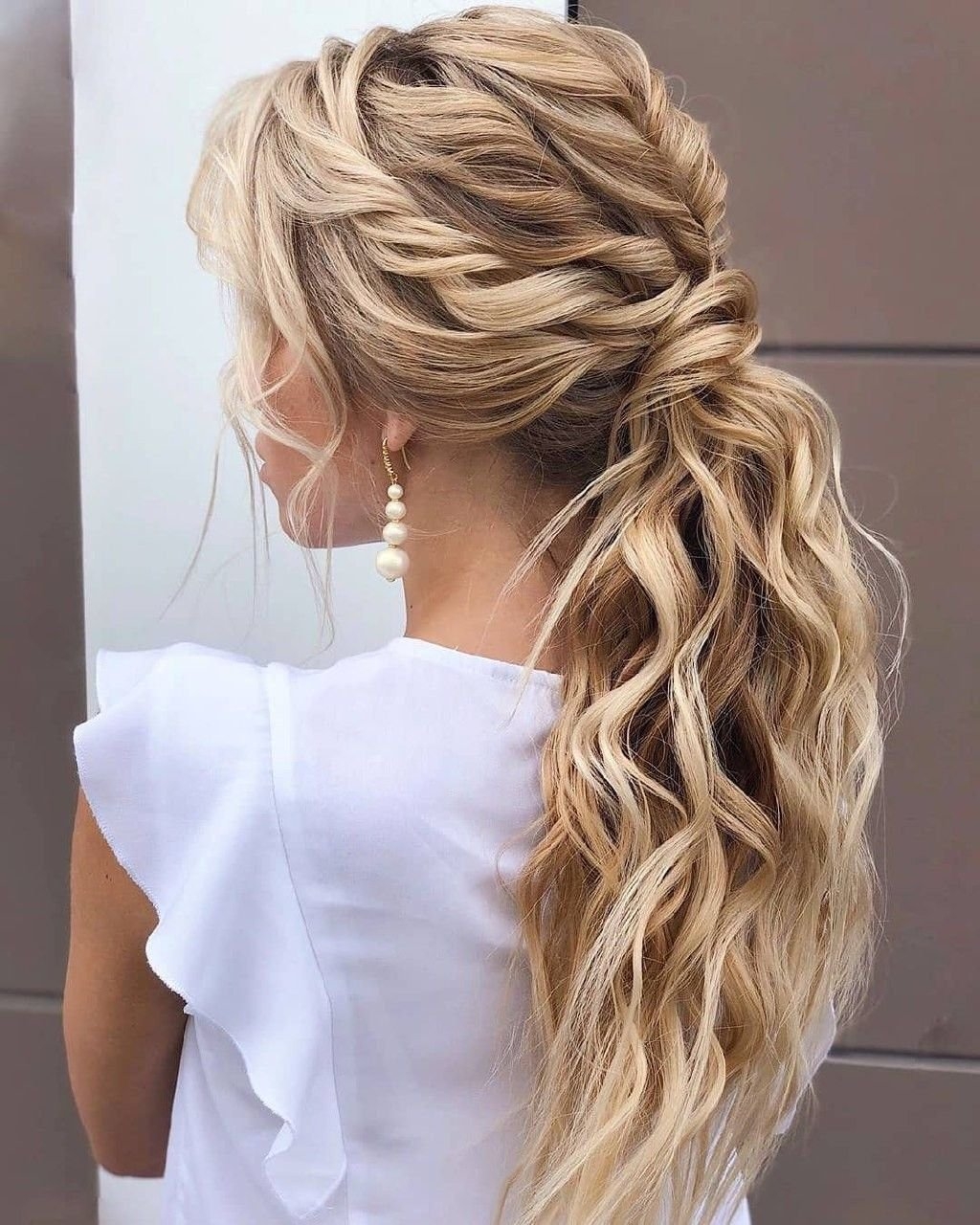 Прическа низкий хвост с локонами