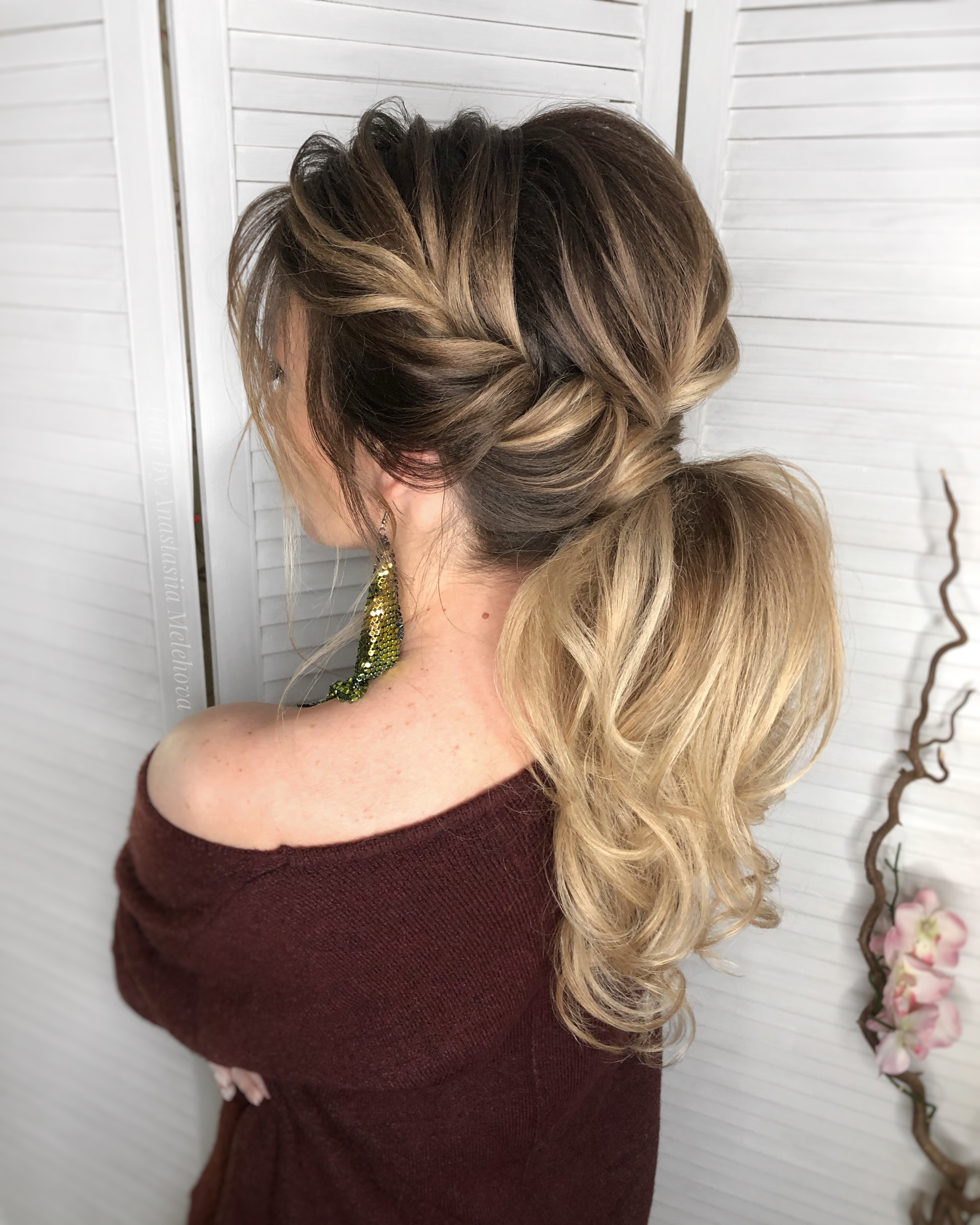 Прическа хвост на длинные волосы