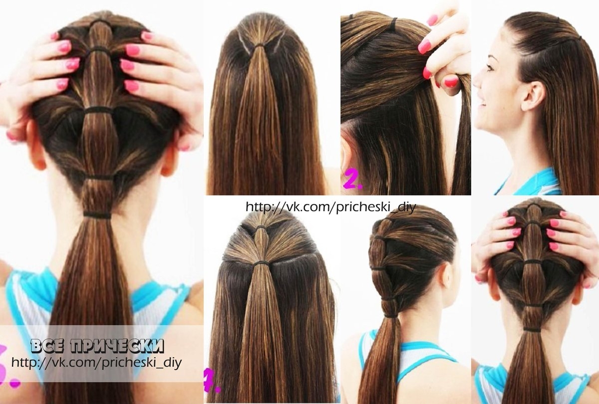 Прическа из хвостиков с резинками