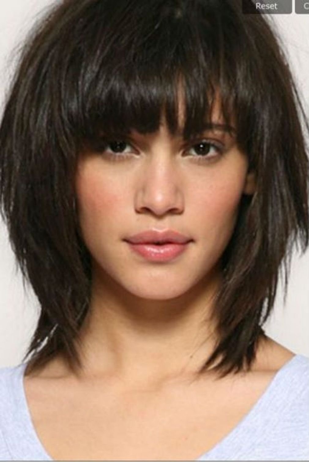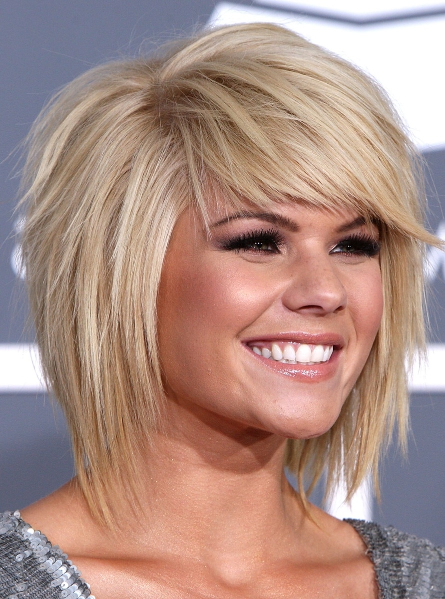 Стрижка Каскад на недлинные волосы с челкой