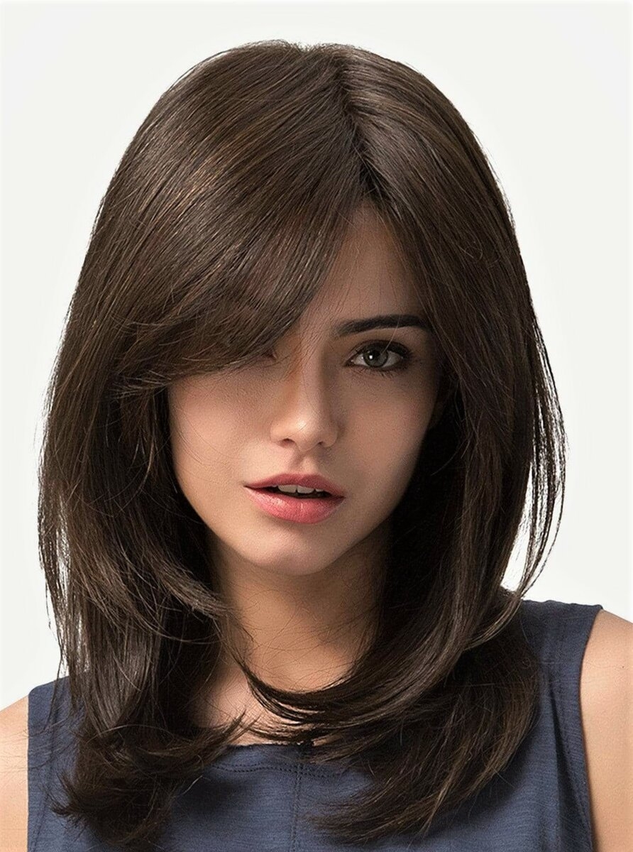 Стрижки на средние волосы с челкой удлиненное каре с челкой