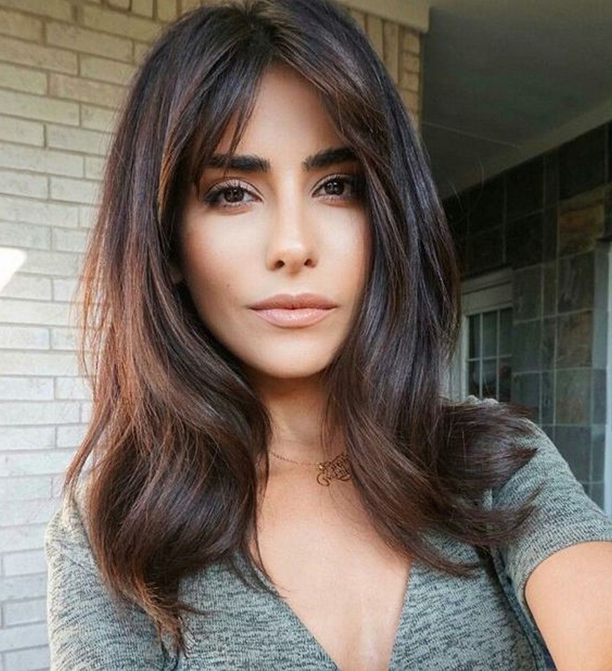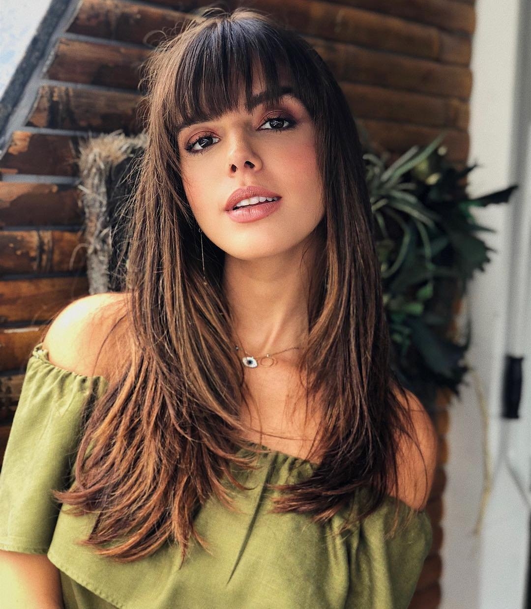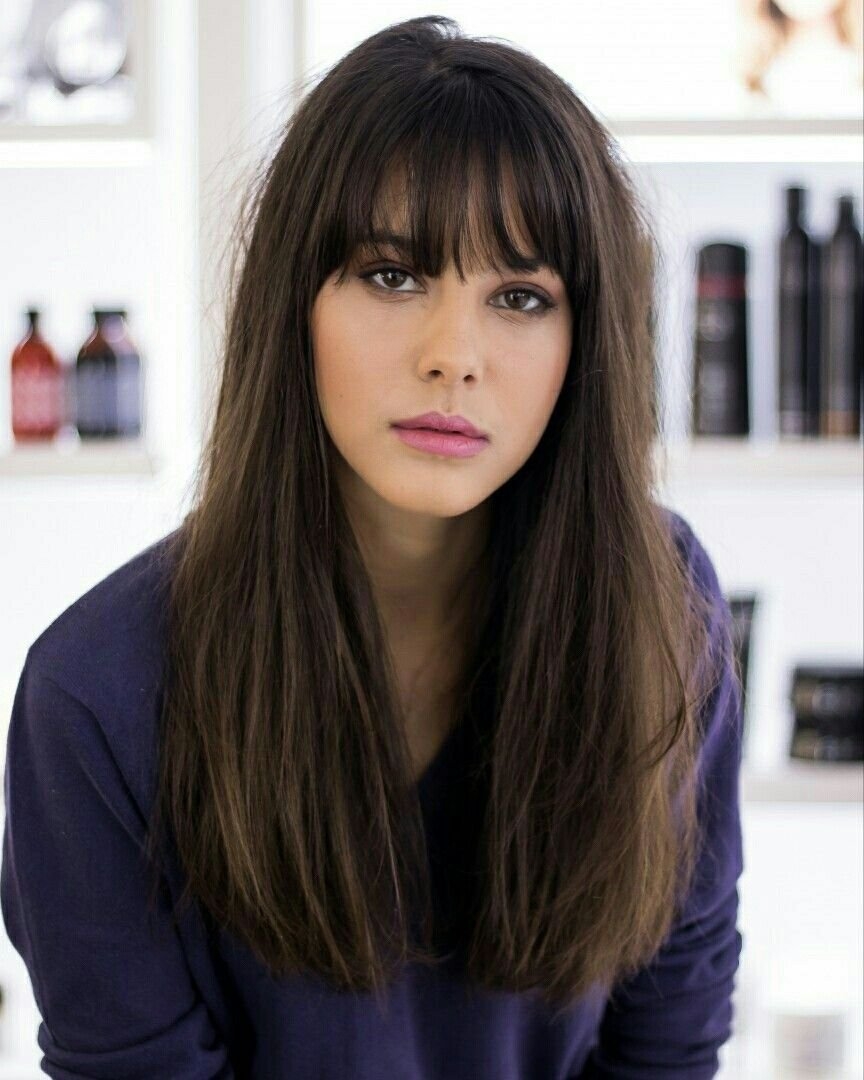 Брюнетка с челкой и длинными волосами