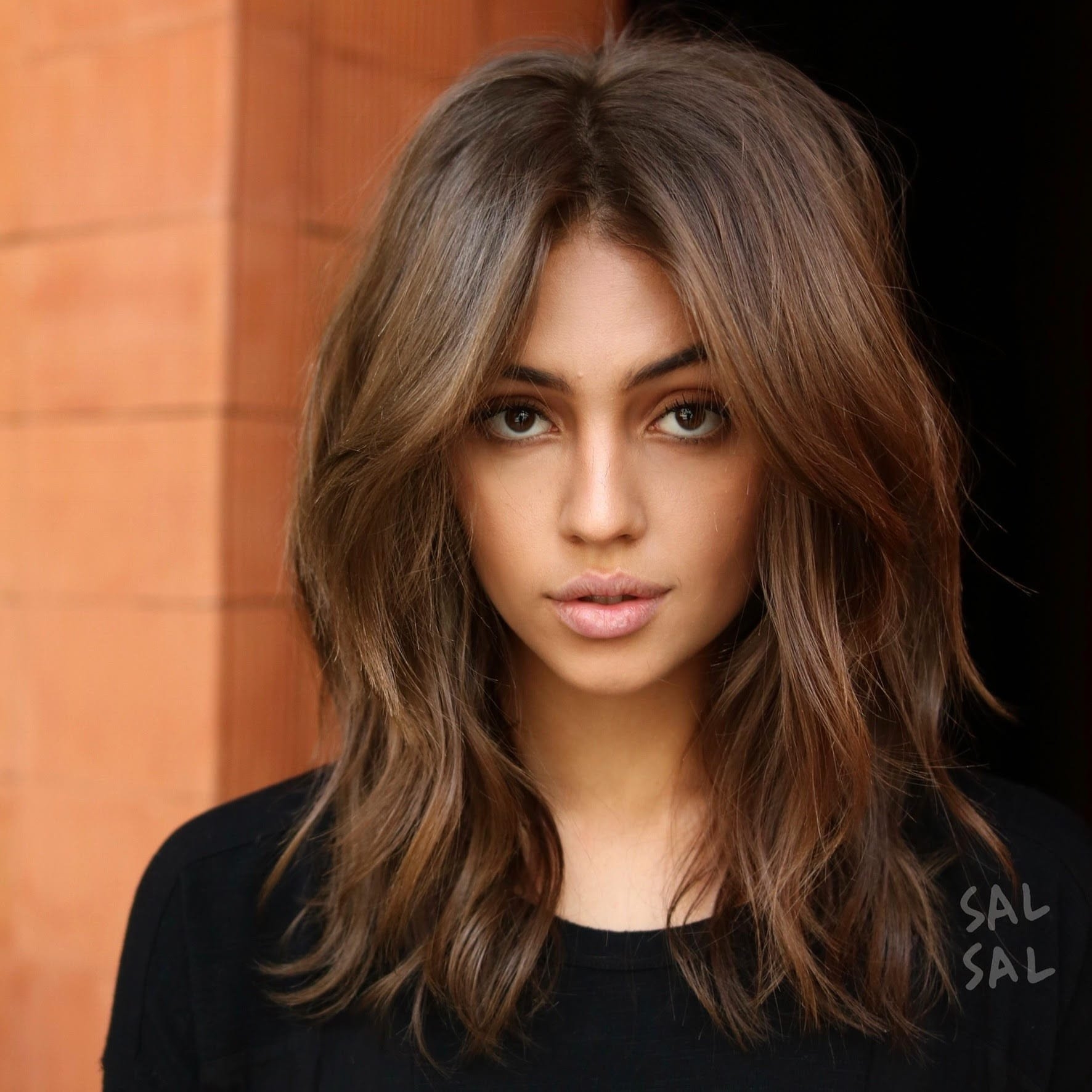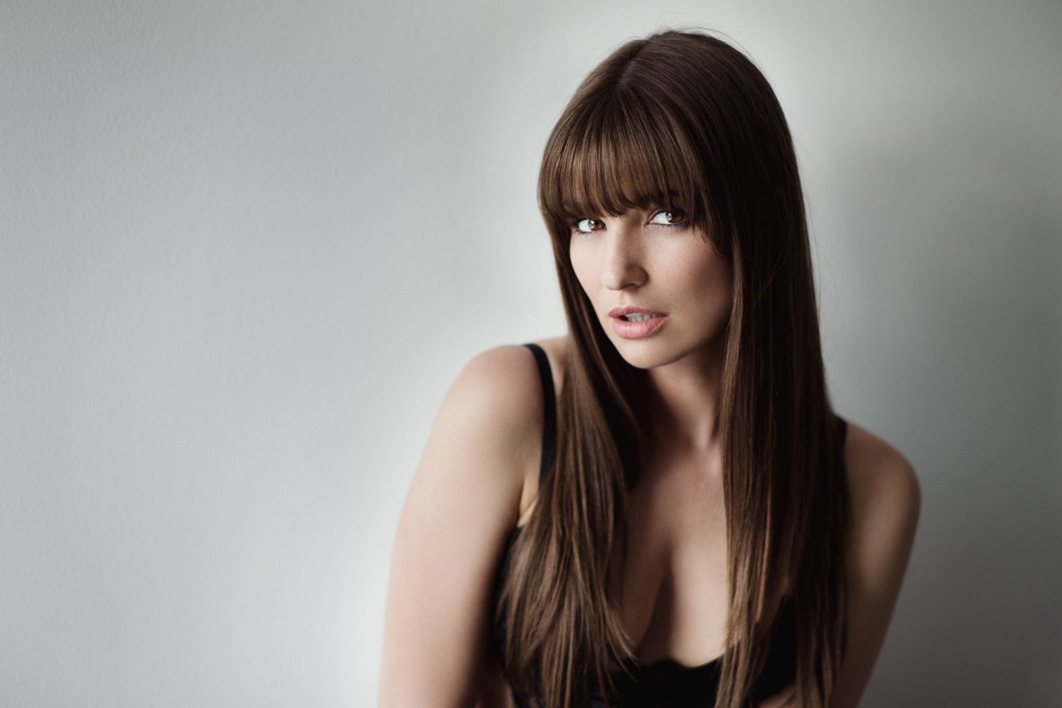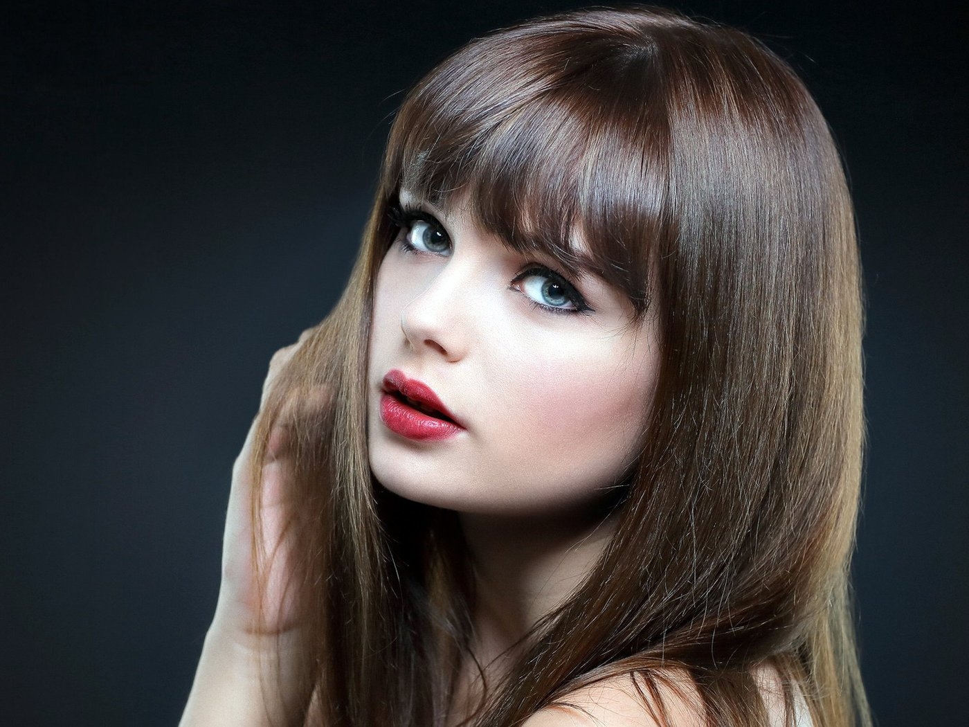 Брюнетка с челкой и длинными волосами