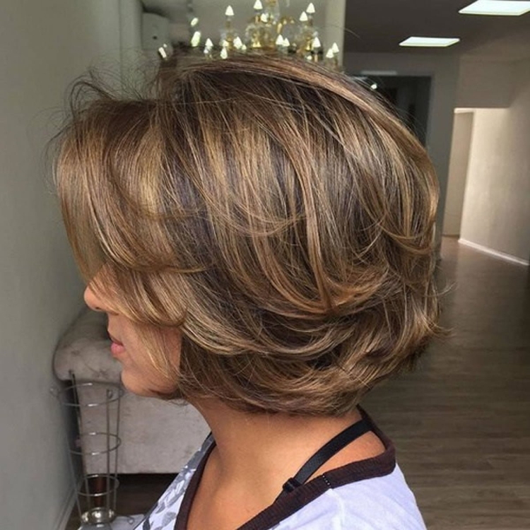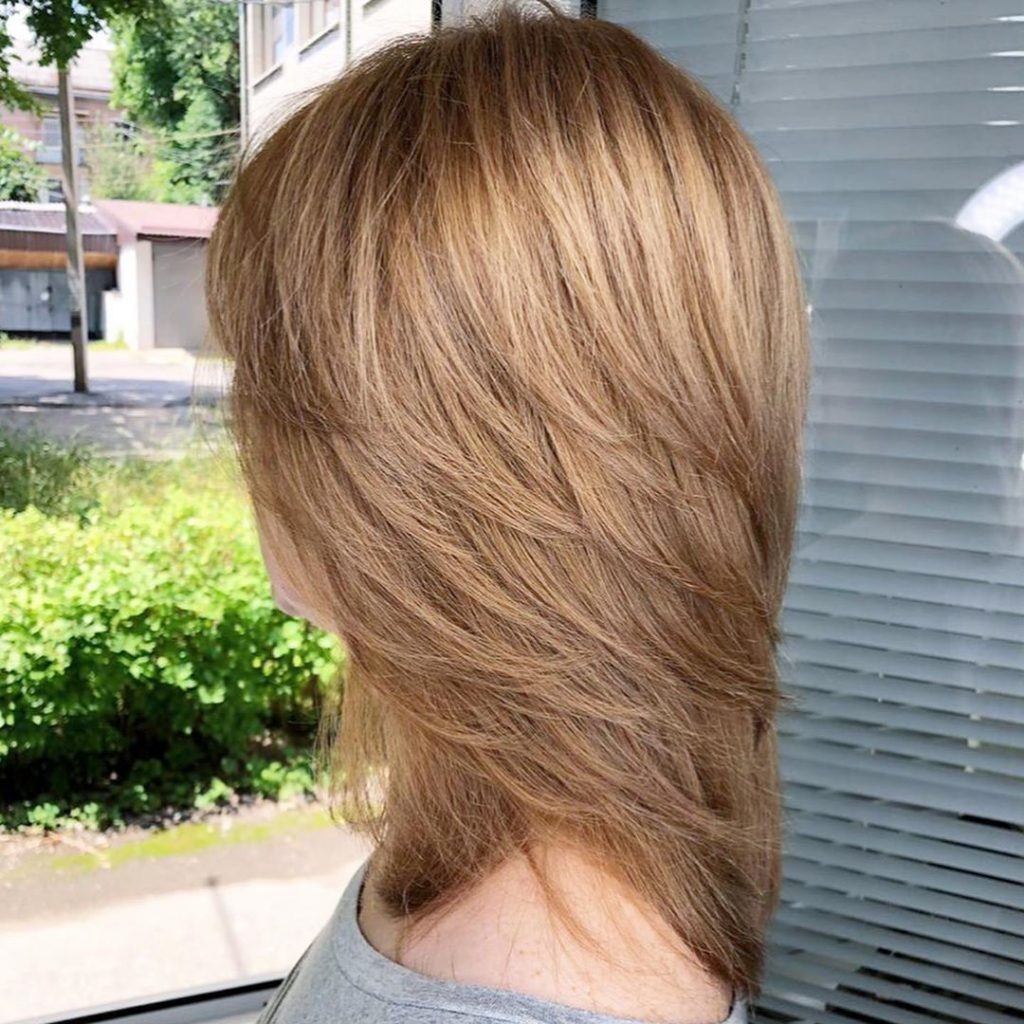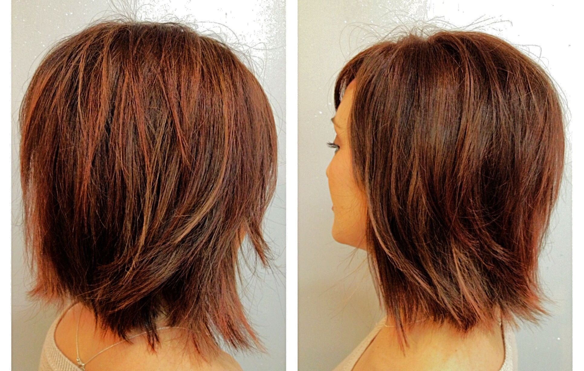 Стрижка Боб+Каскад с короткой макушкой на средние волосы