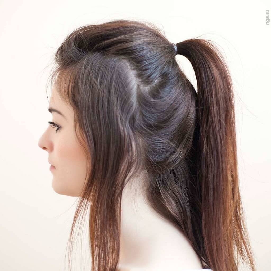 Прическа хвост с распущенными волосами