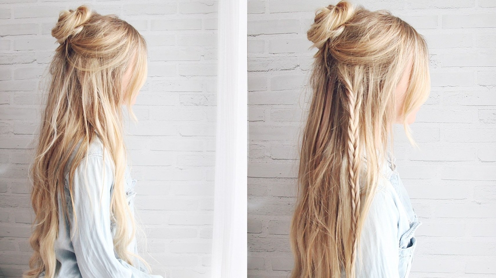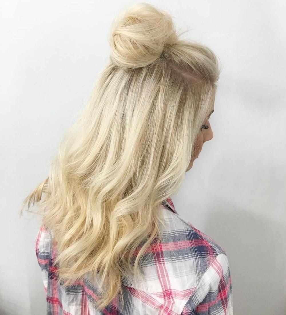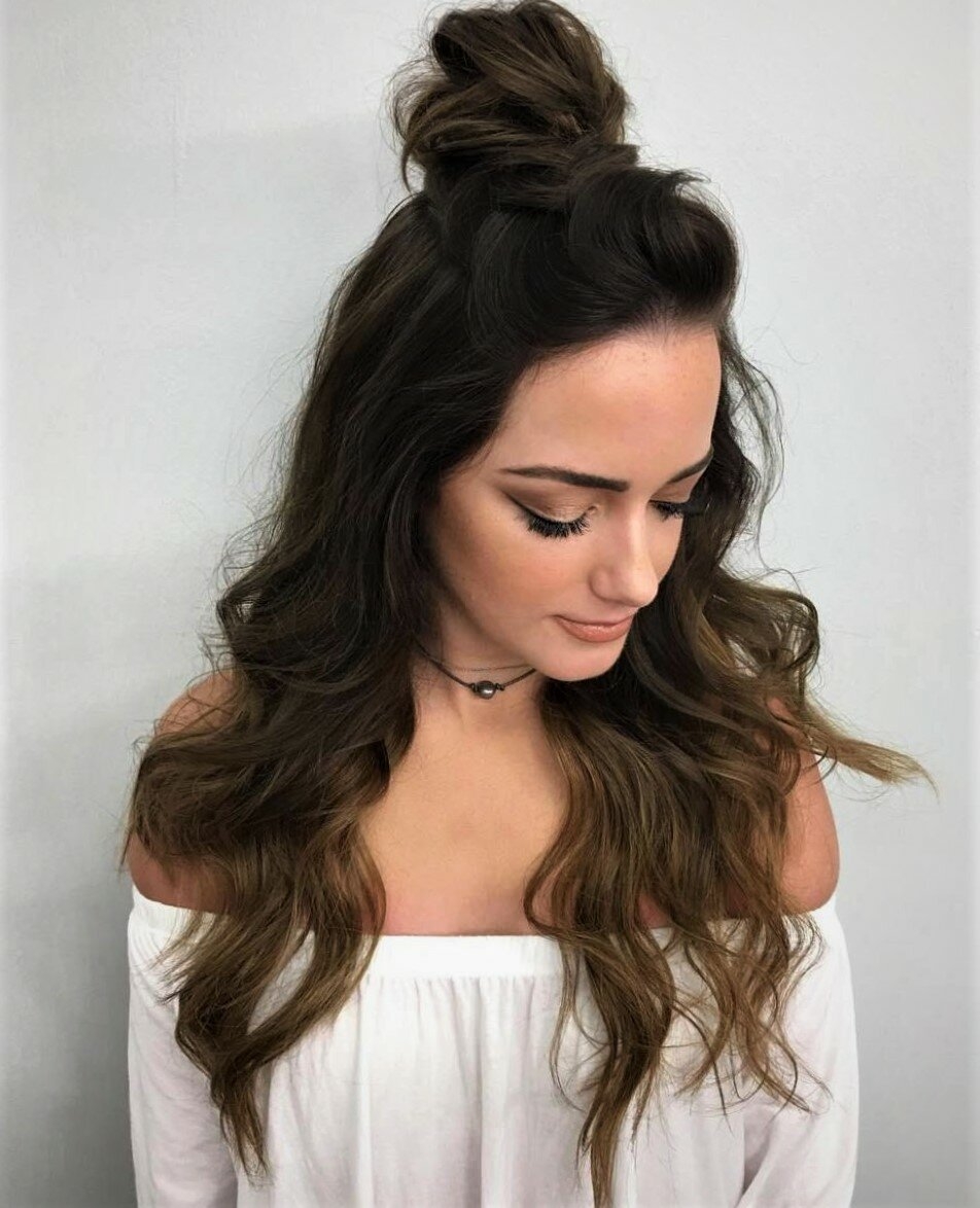 Прическа распущенные волосы с пучком на макушке