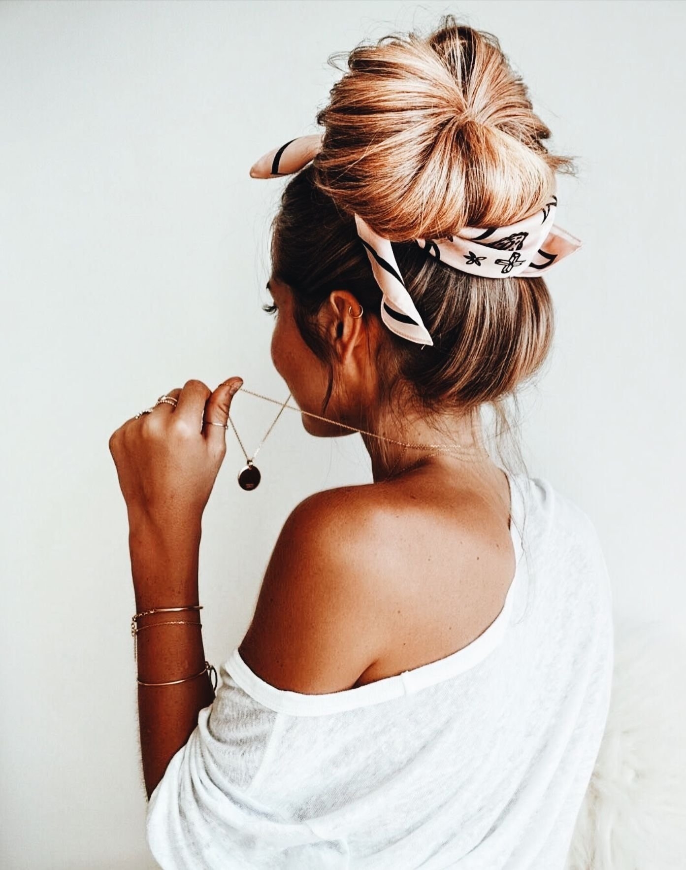 Прическа пучок с платком
