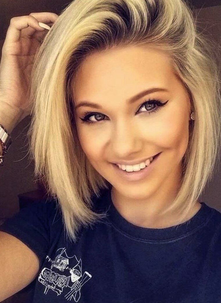 Каре прическа блондинка с короткой стрижкой