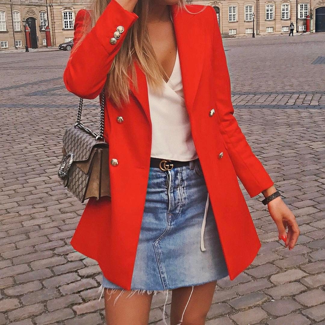 Красное платье пиджак образы