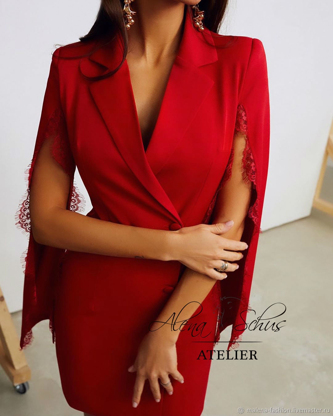 Красное платье пиджак с кружевом
