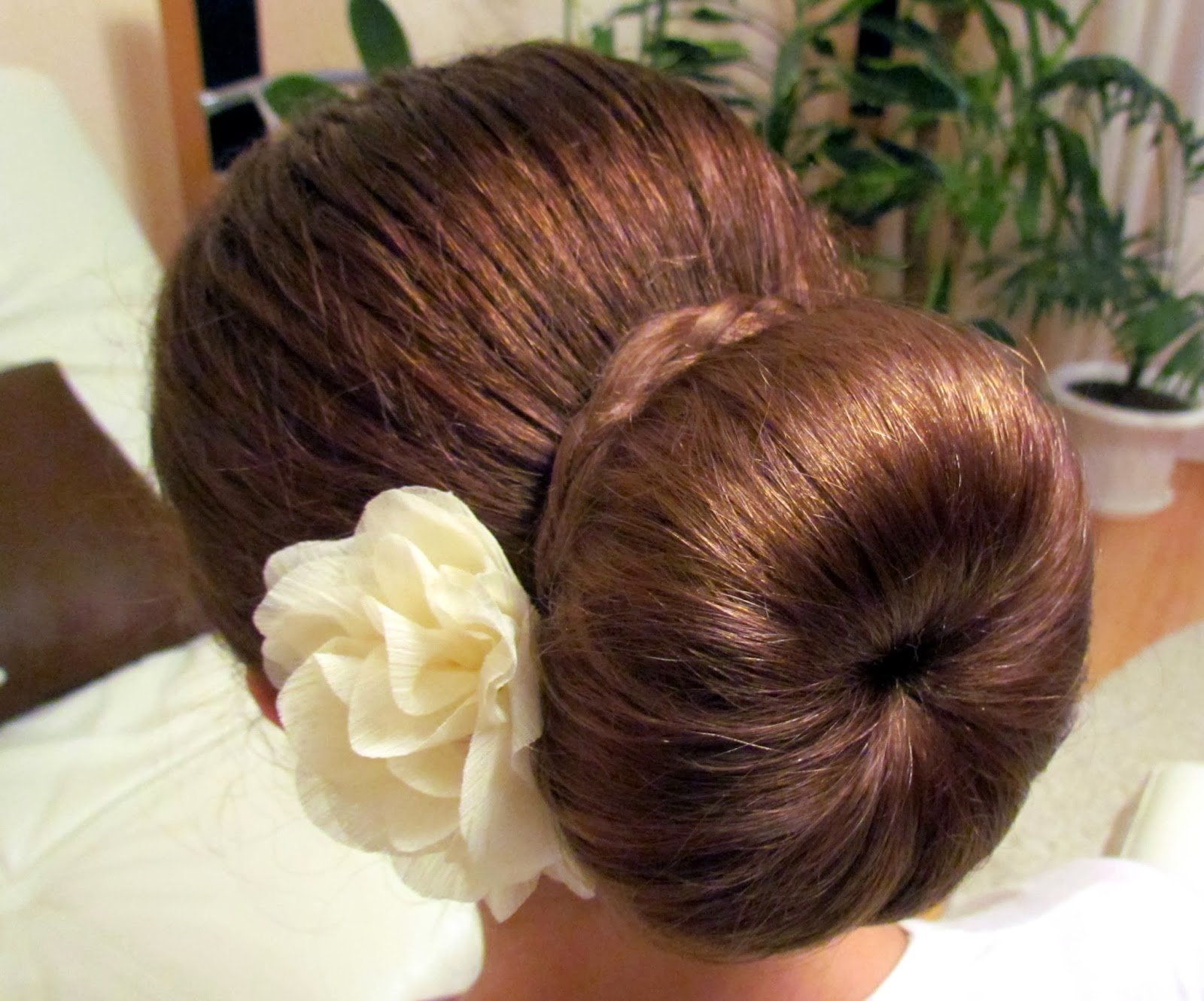 Пучок с бубликом на длинные волосы
