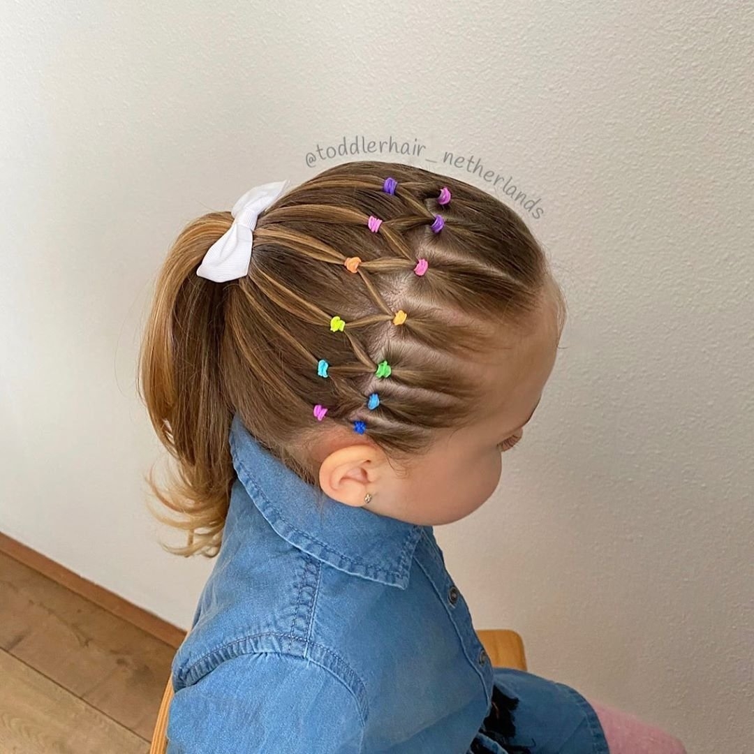 Прическа с маленькими резиночками для девочки на длинные волосы