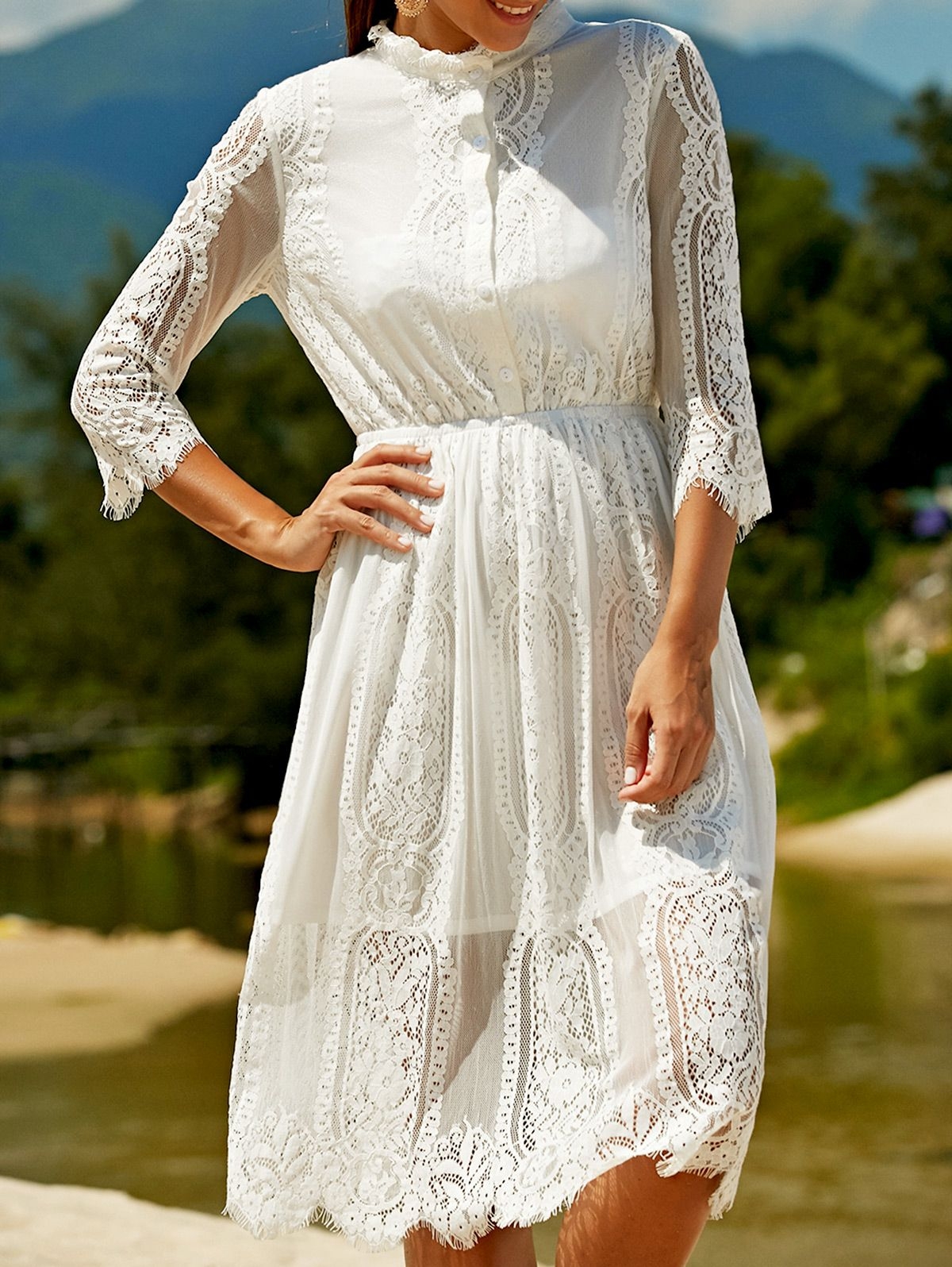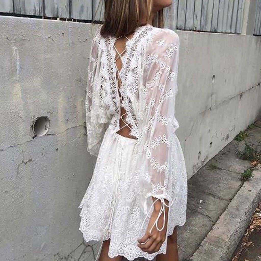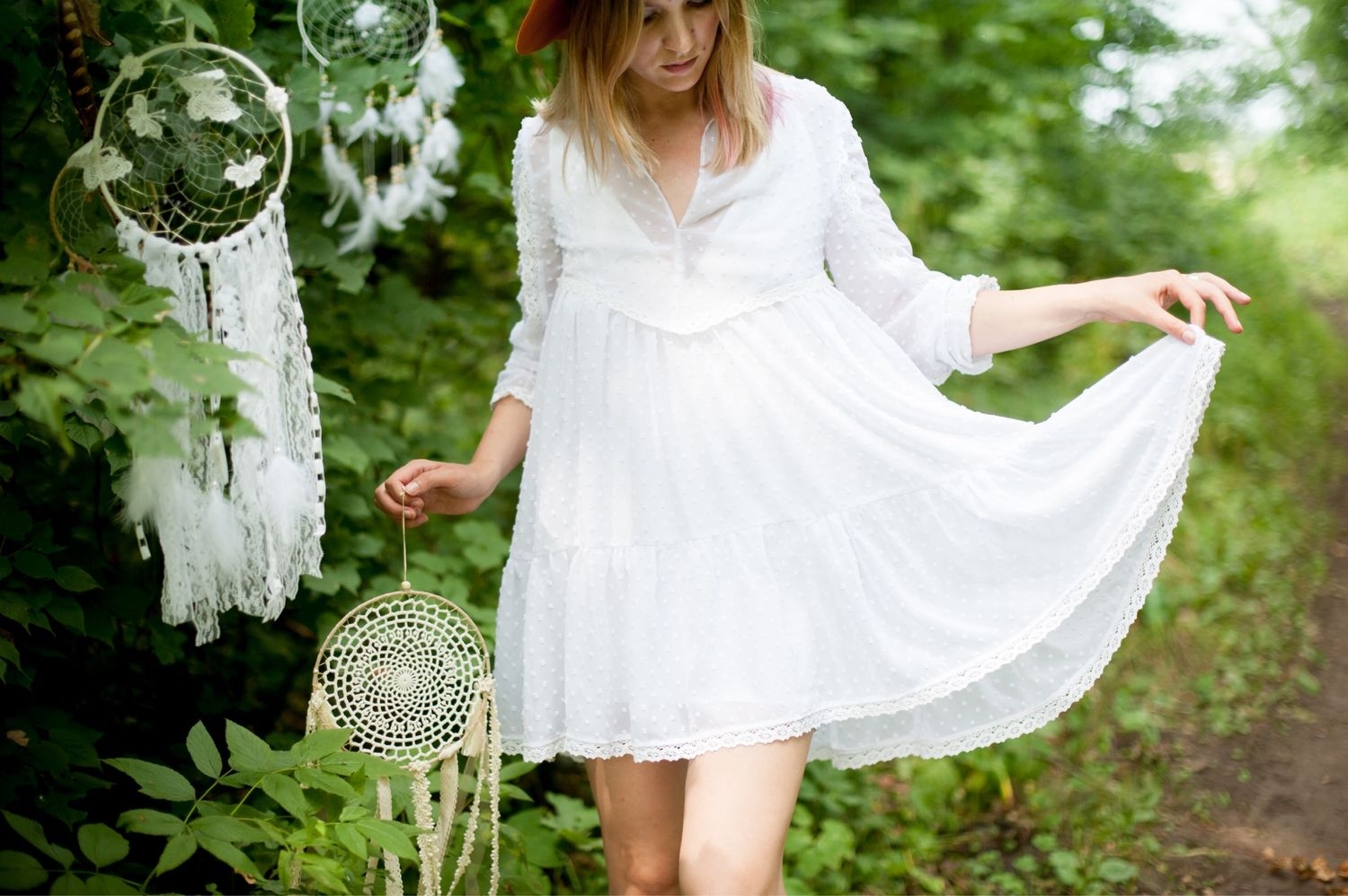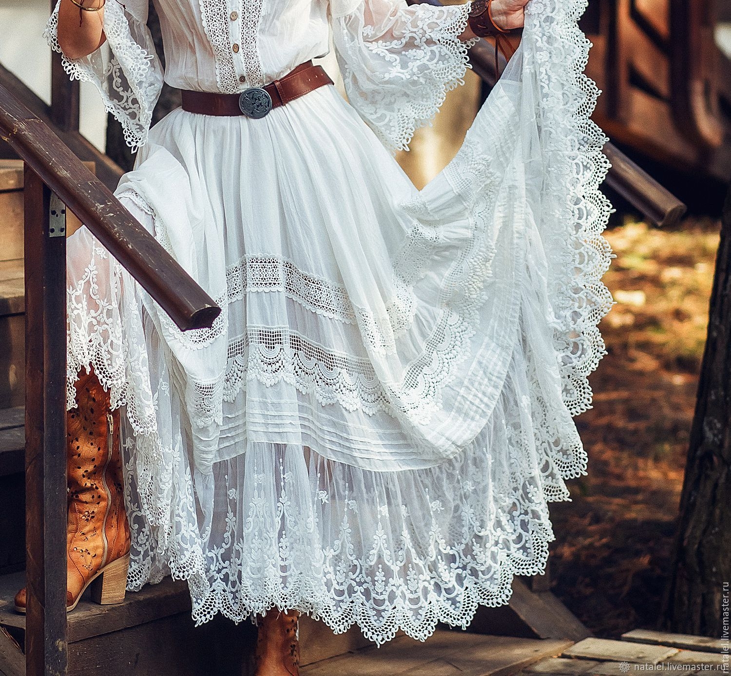 Белое кружевное платье в стиле бохо