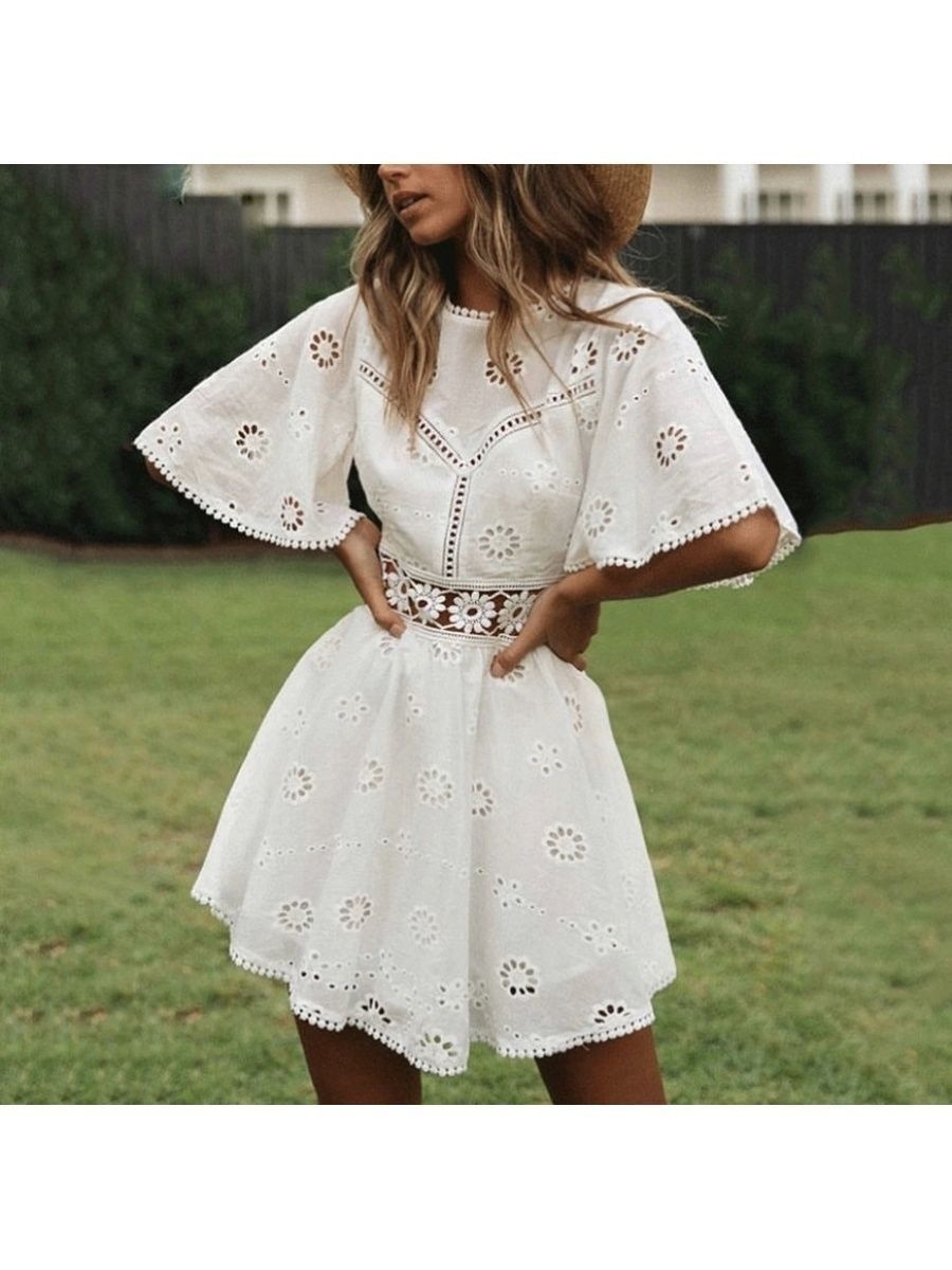 Ажурное белое летнее платье