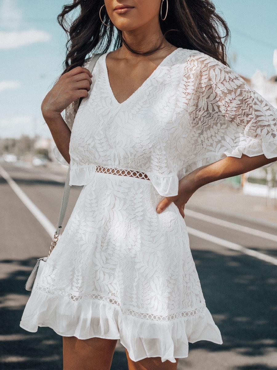 Белое летнее платье с кружевом