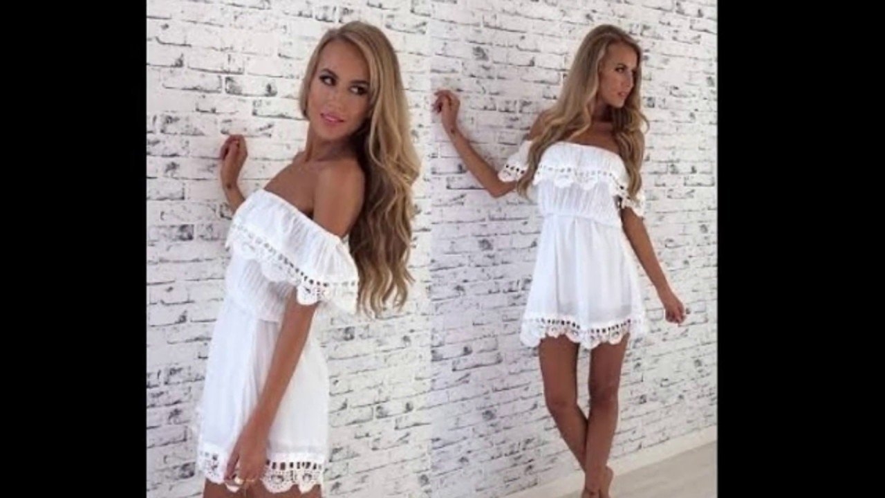 Белое летнее платье без плеч
