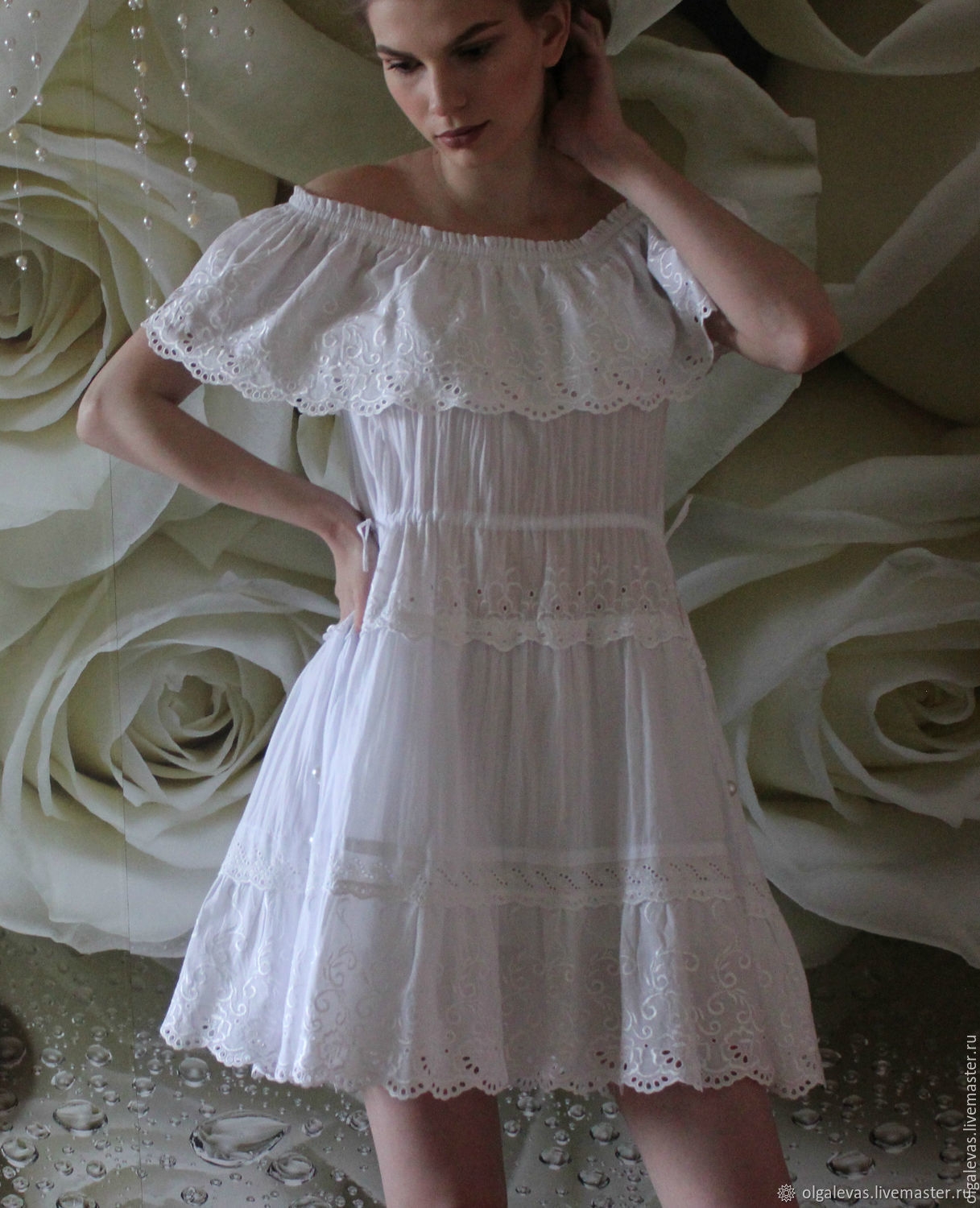 Платье белое кружевное летнее