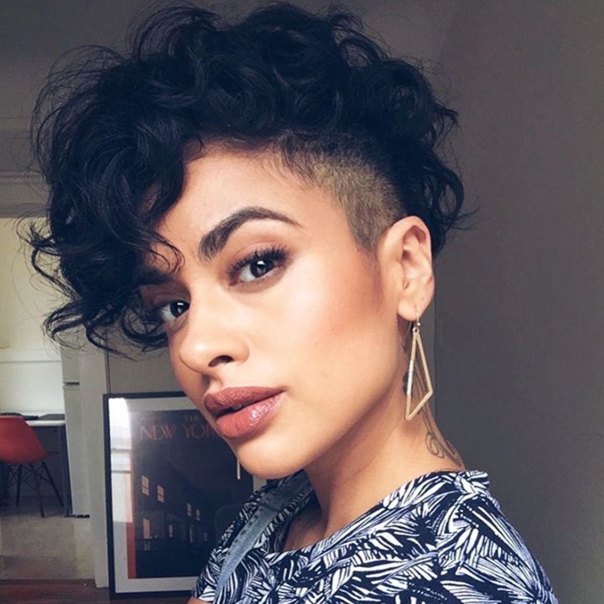 Короткие кудрявые волосы с выбритыми висками