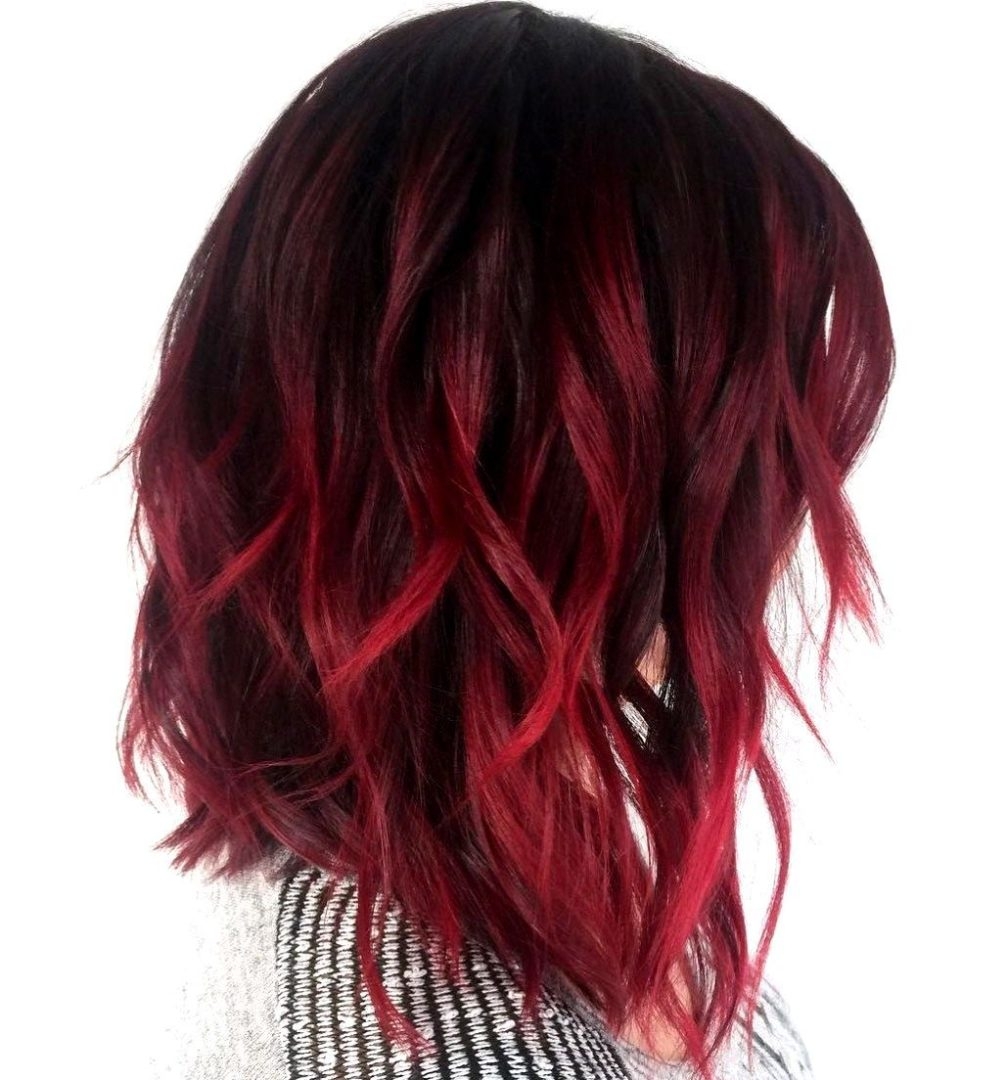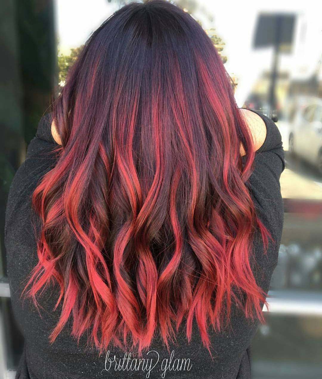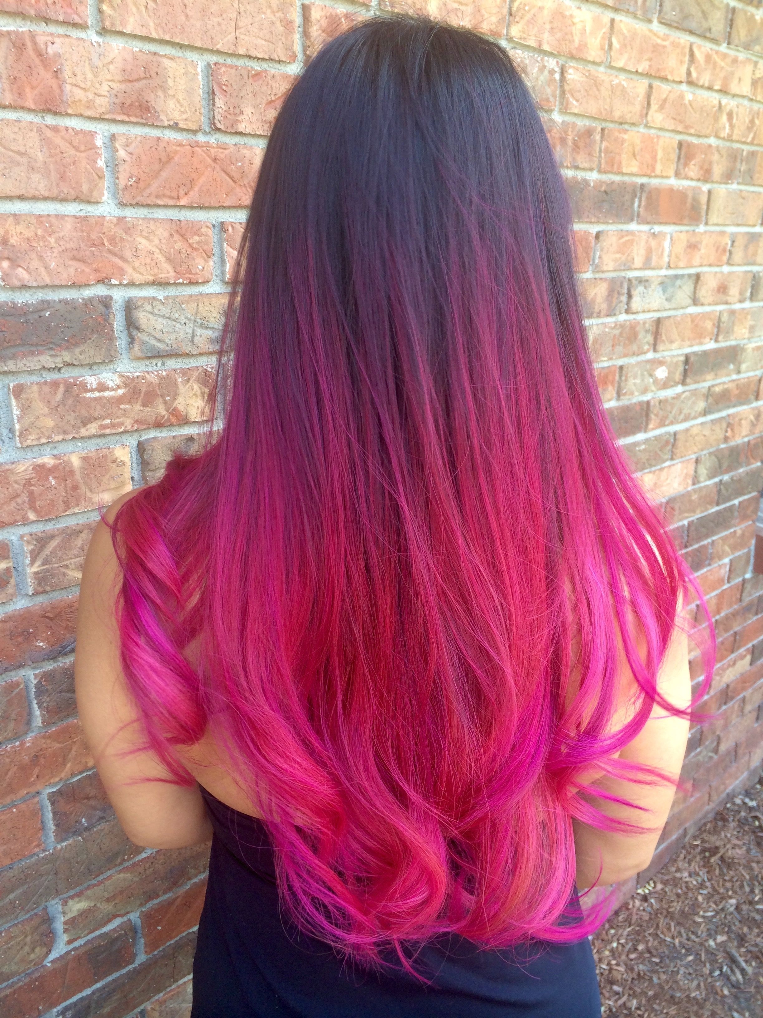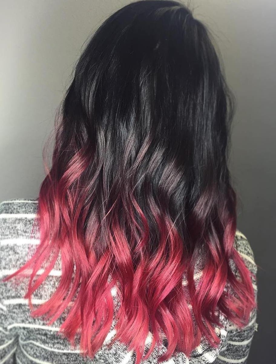 Красно черное омбре на длинные волосы