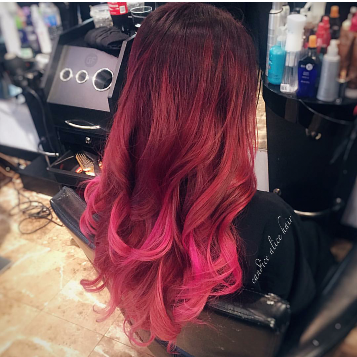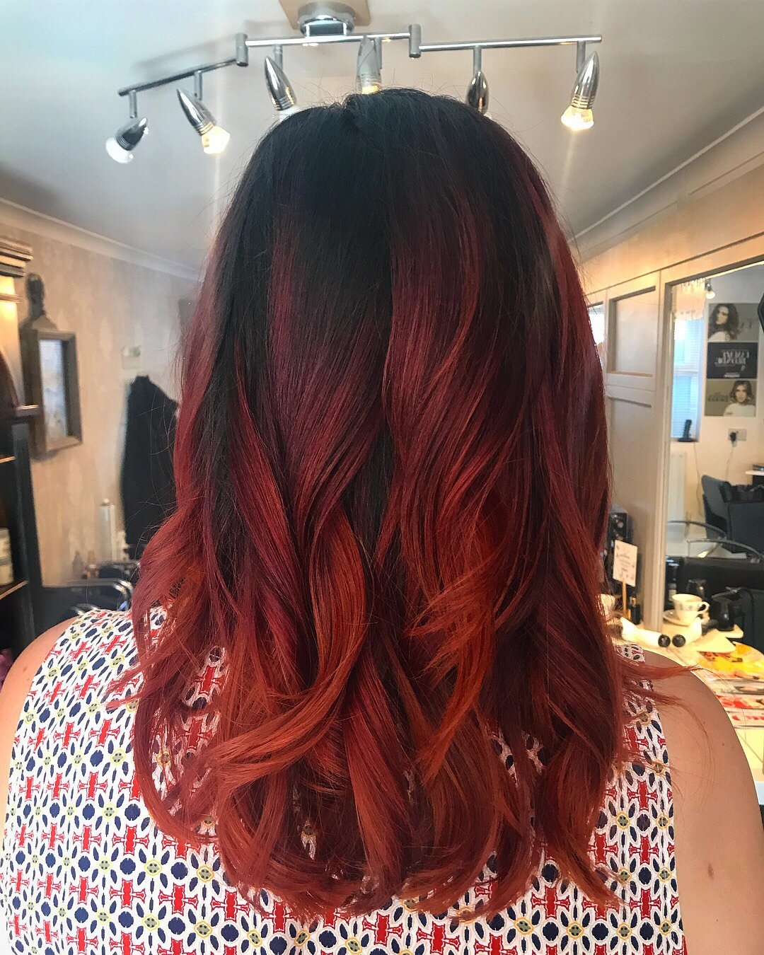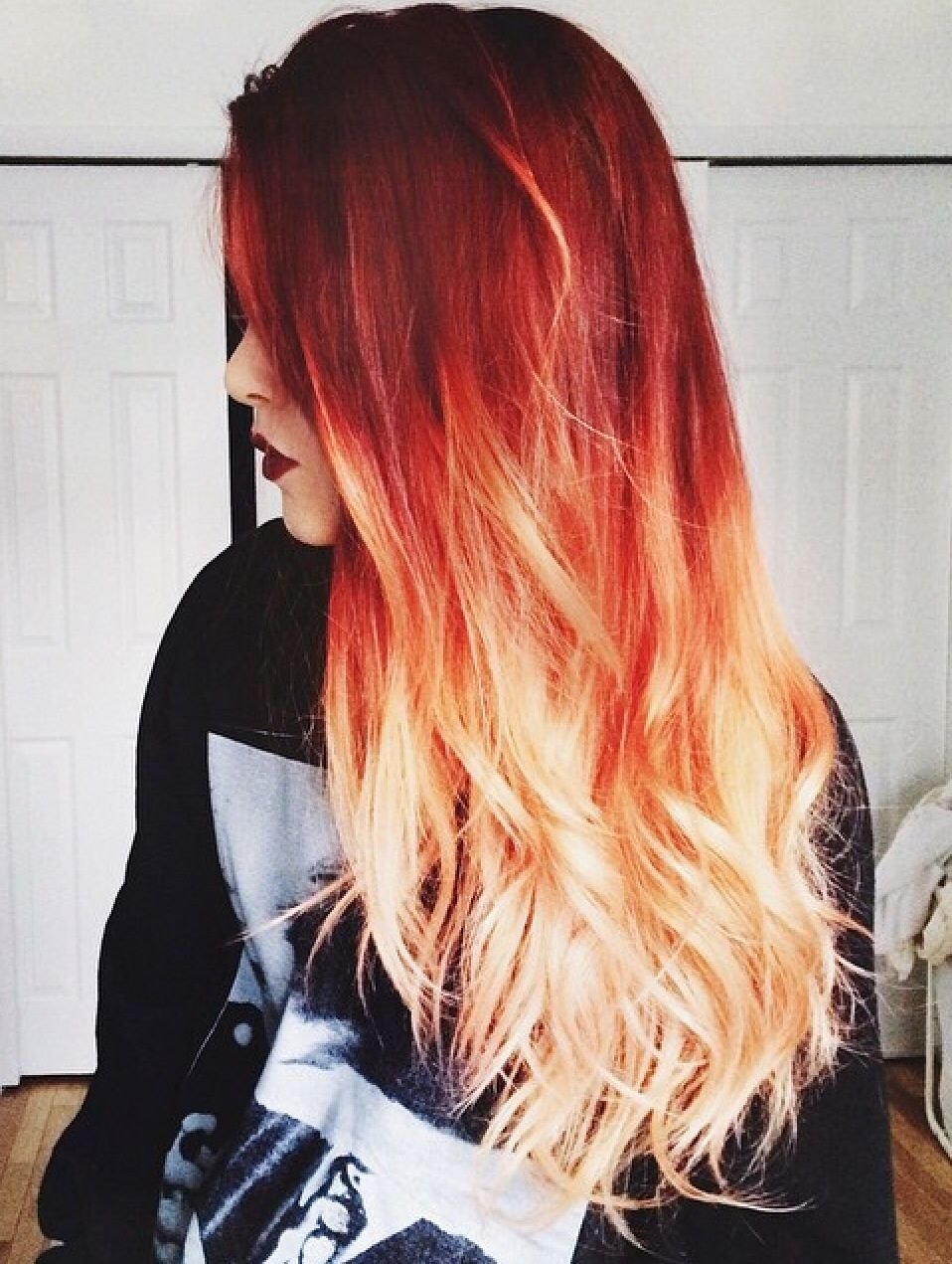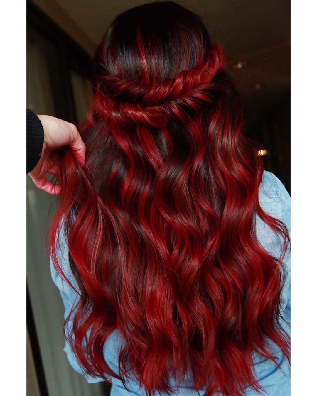 Красно черное омбре на длинные волосы
