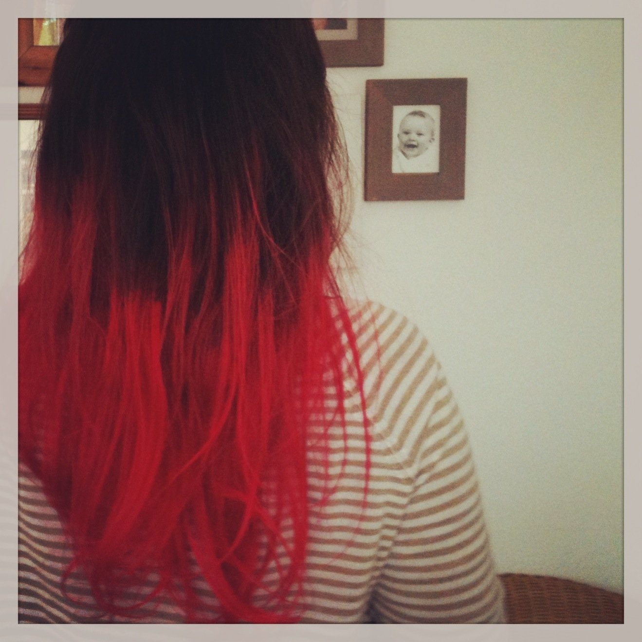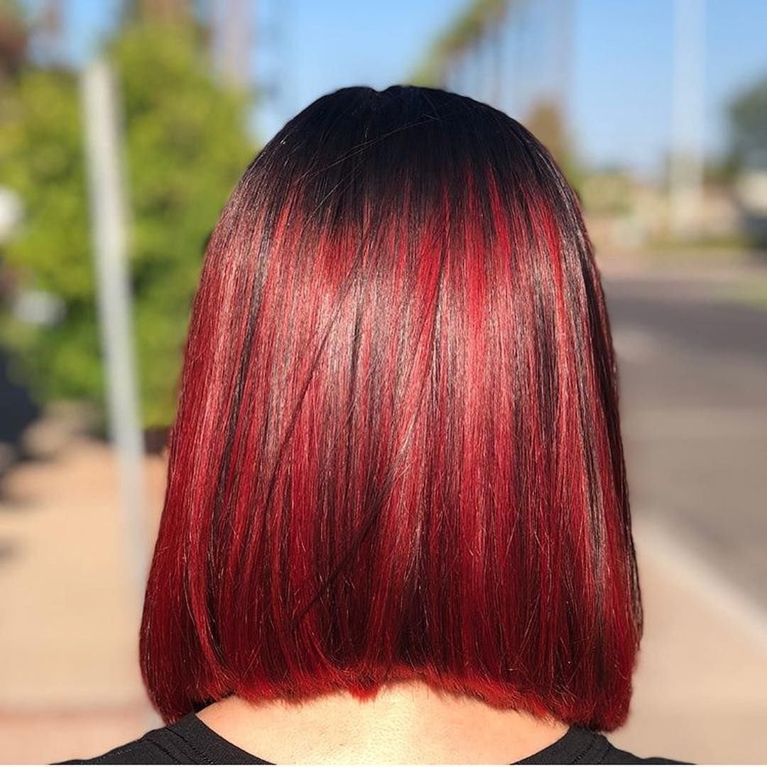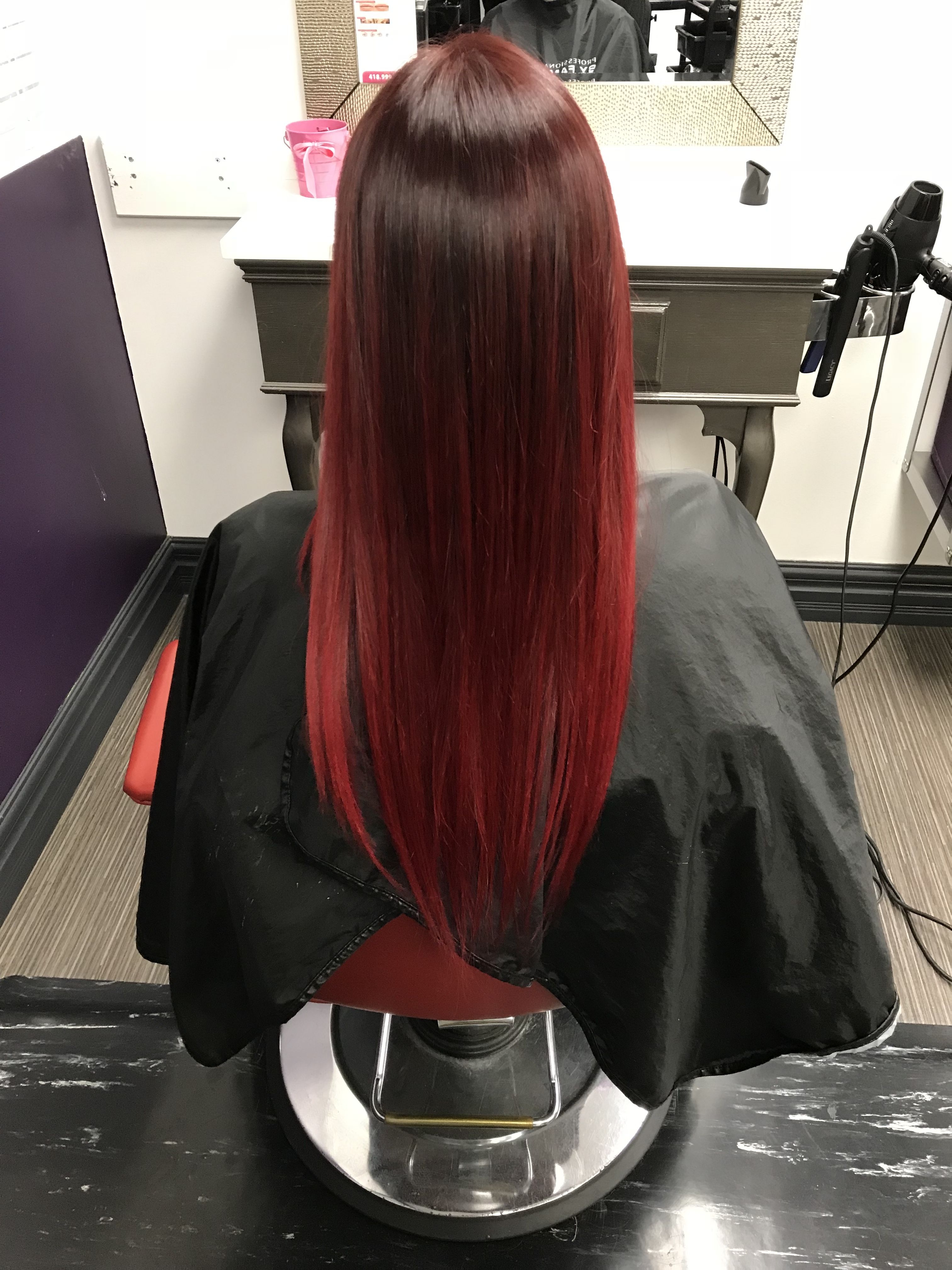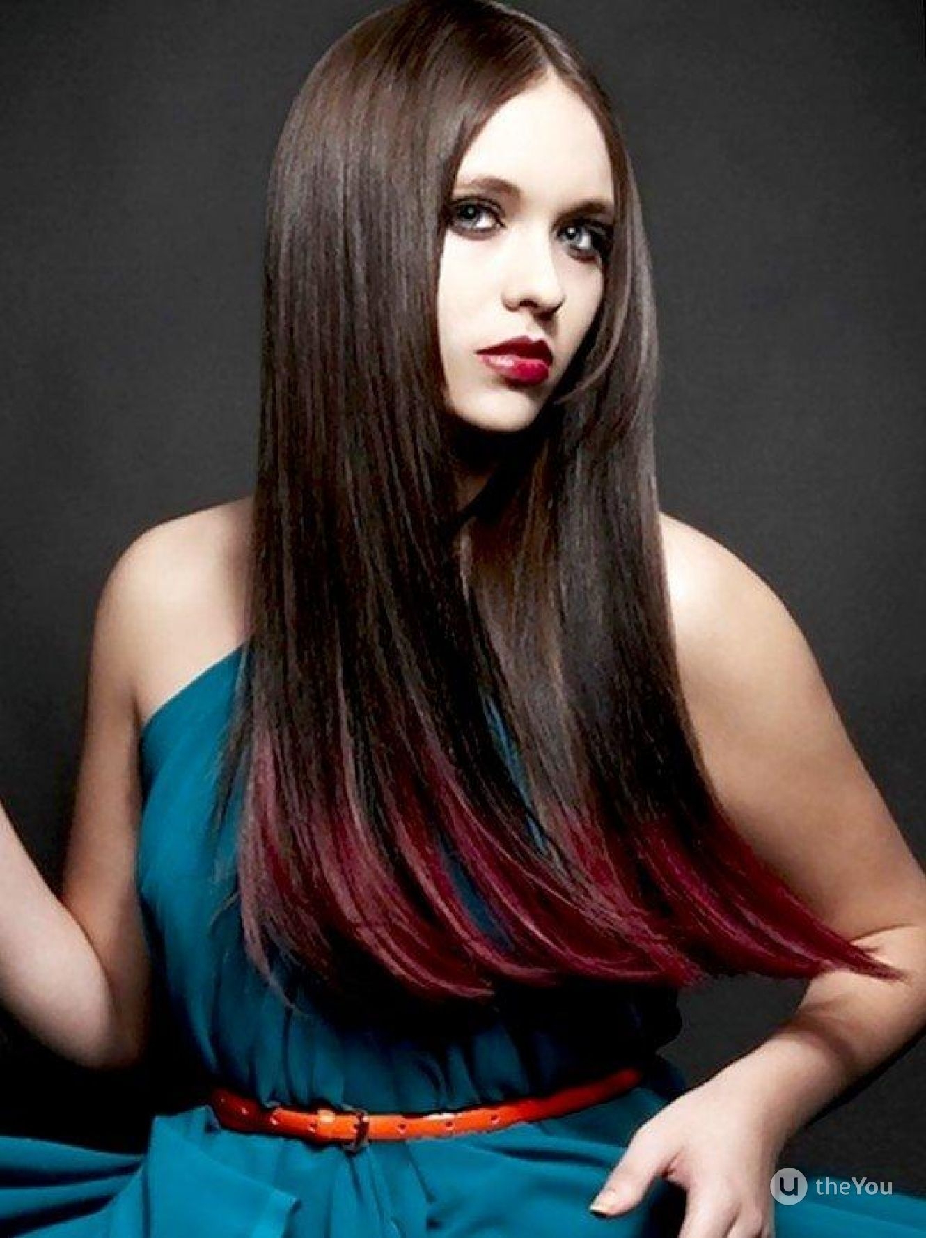 Красное омбре на темные прямые волосы