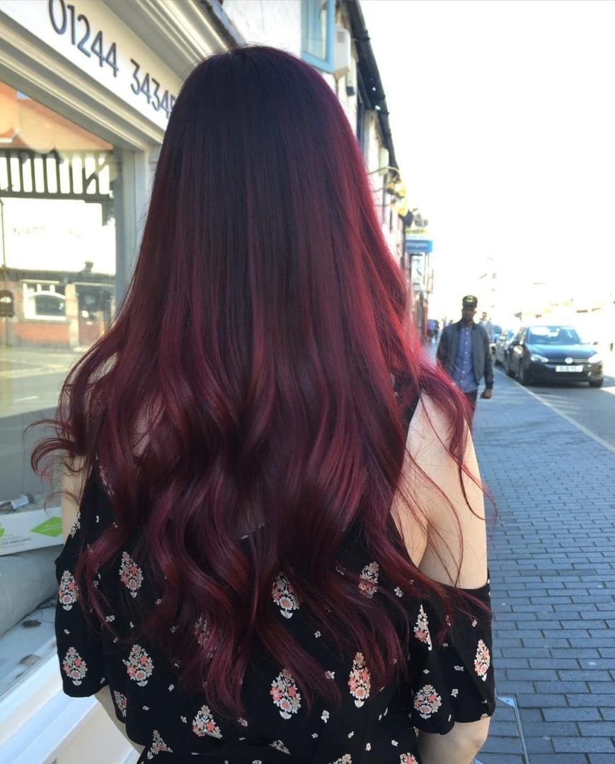 Бордовое омбре на темные волосы