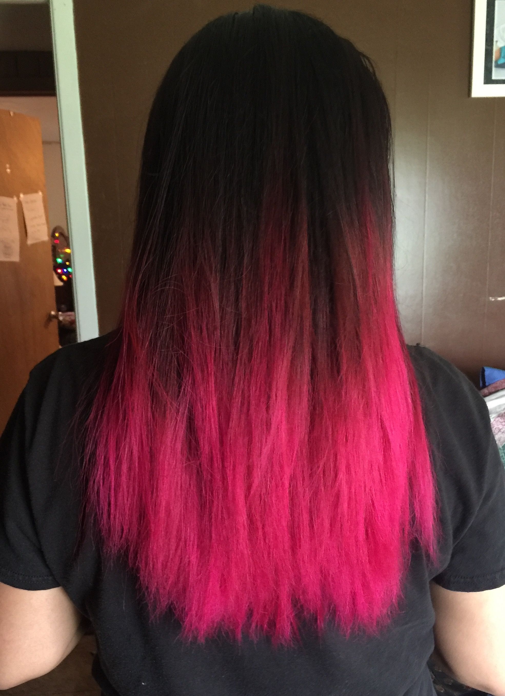 Чёрные волосы с розовыми кончиками