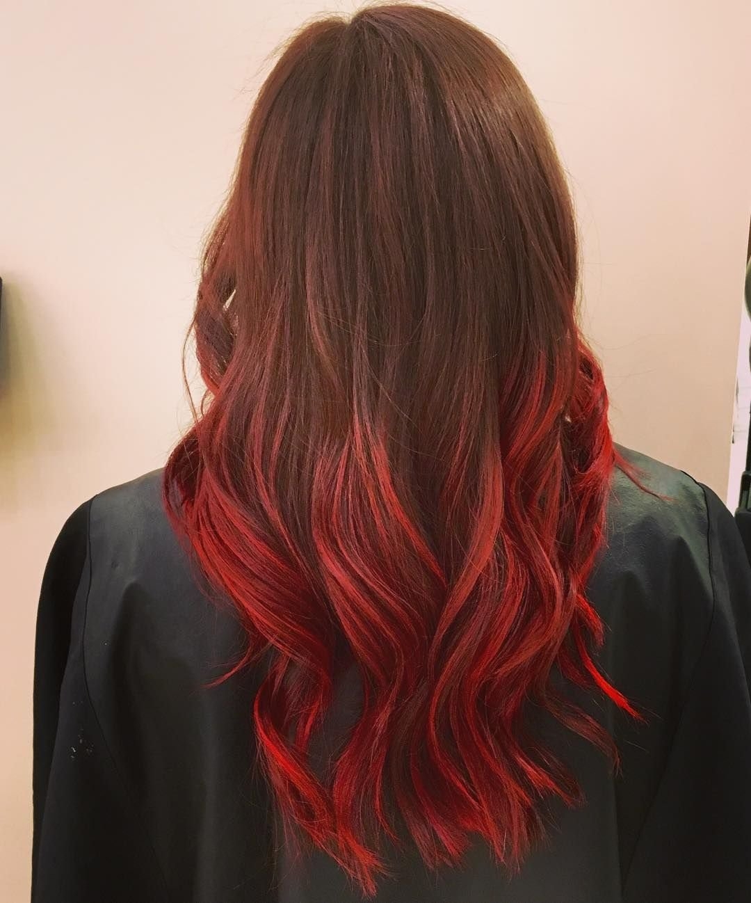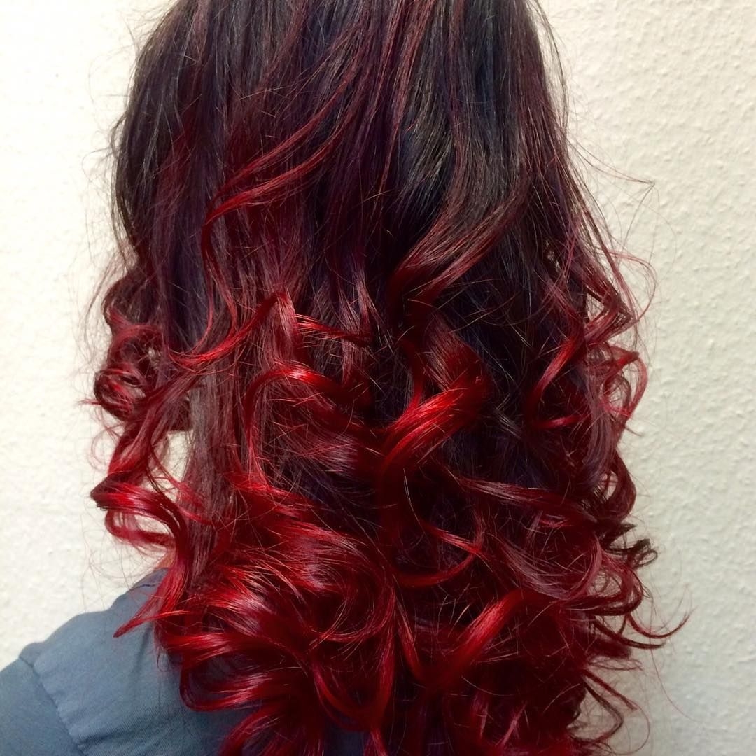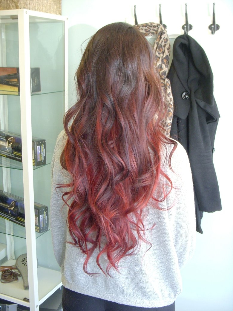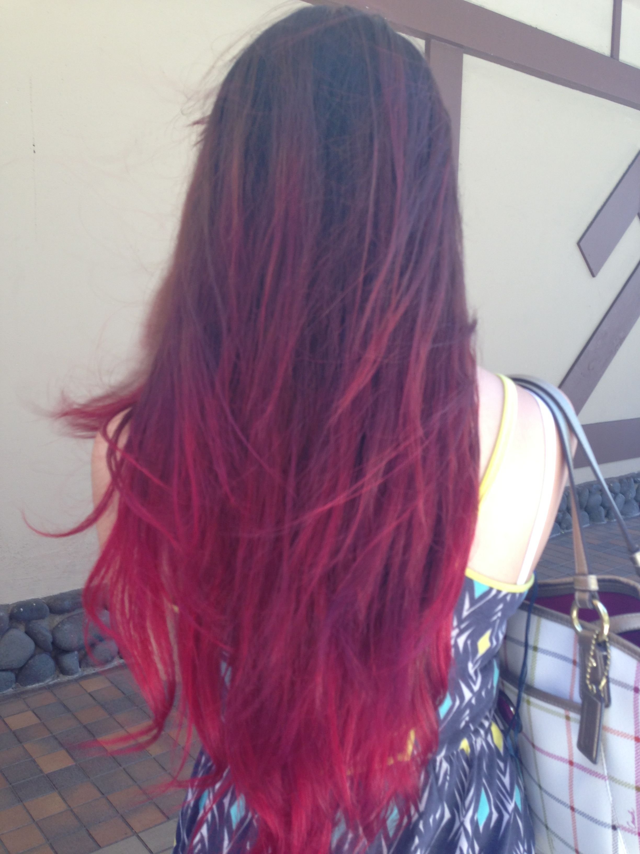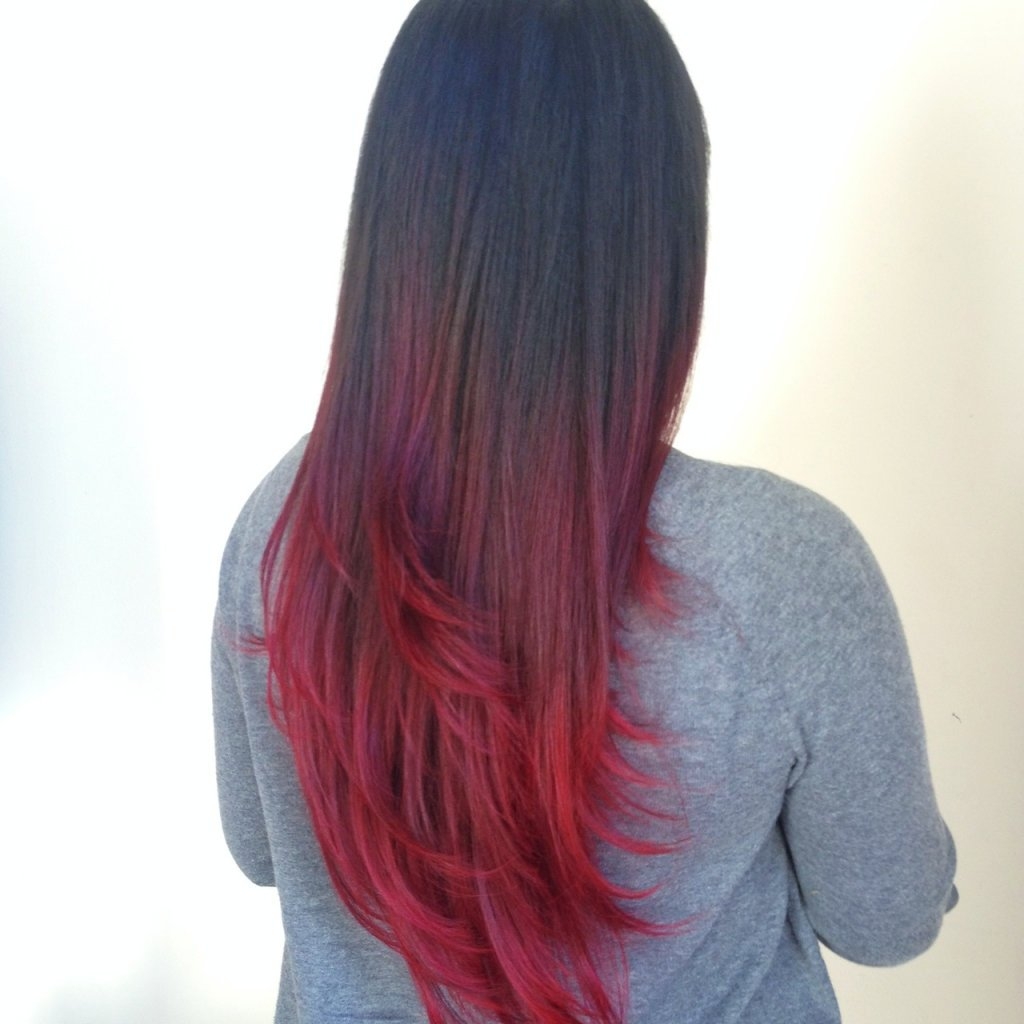 Красное омбре на темные волосы длинные