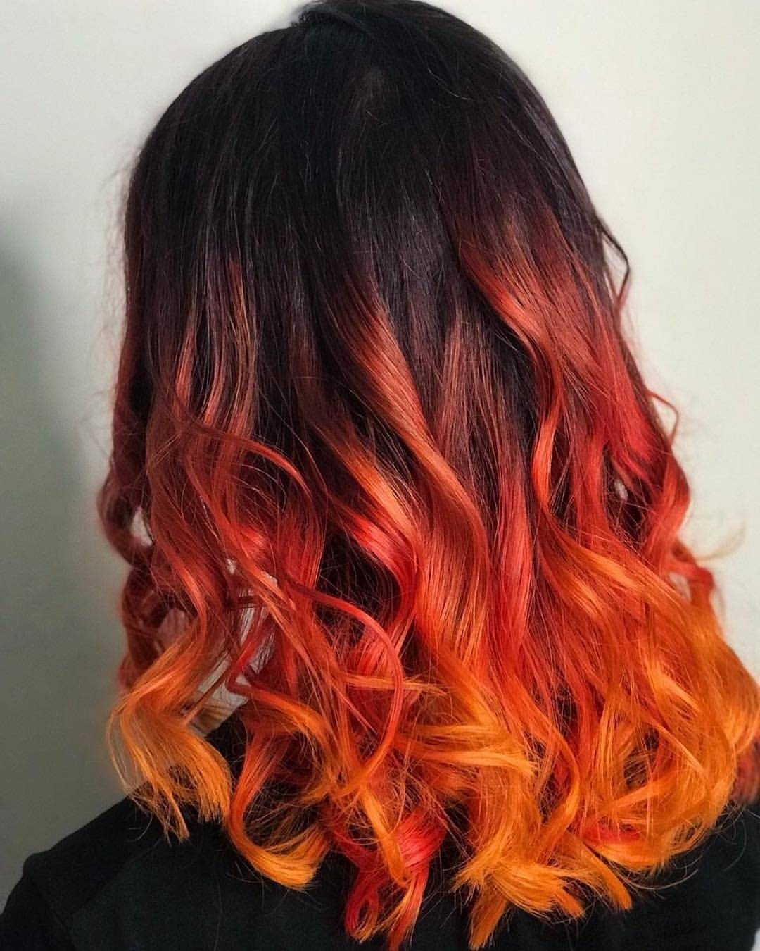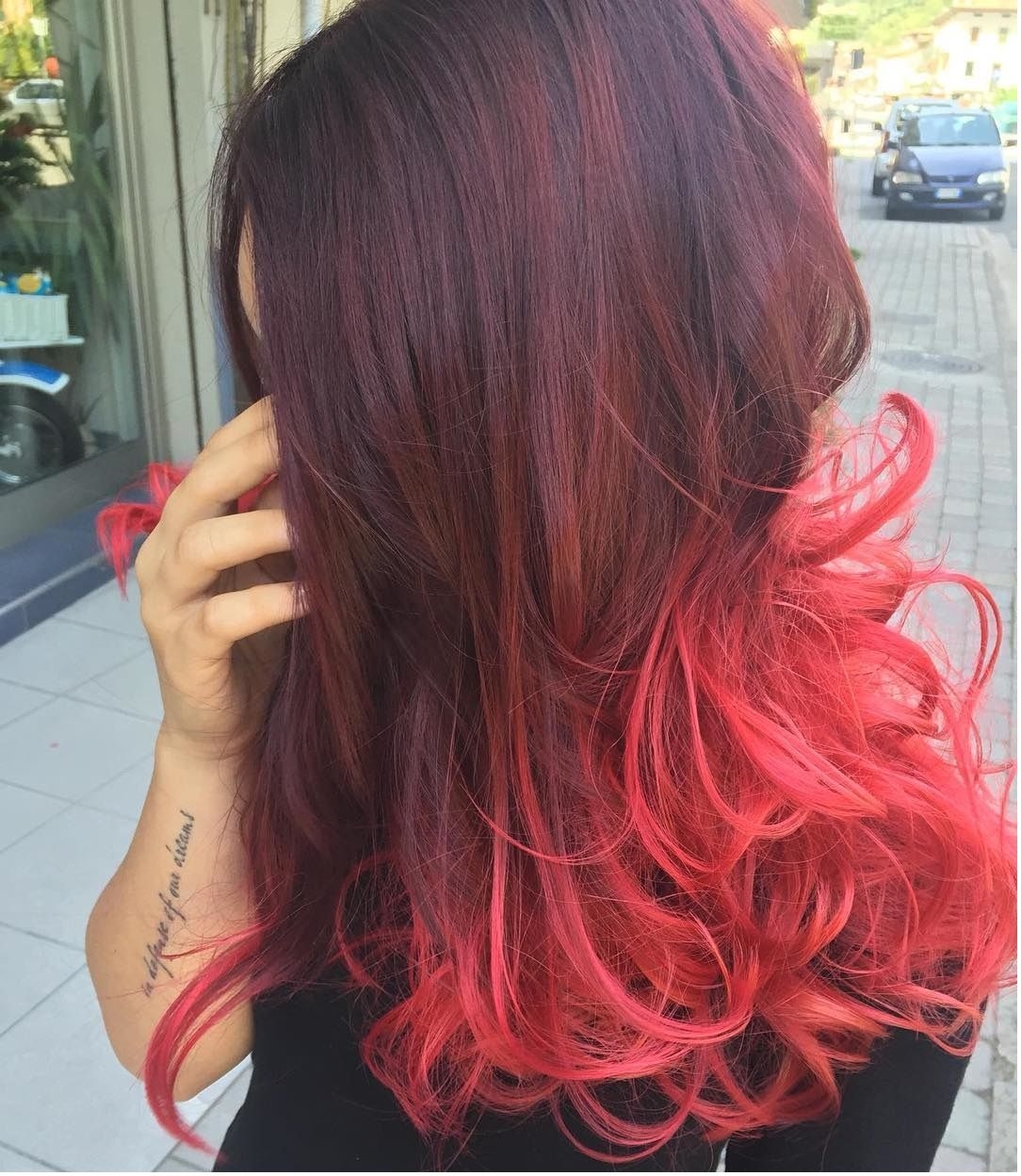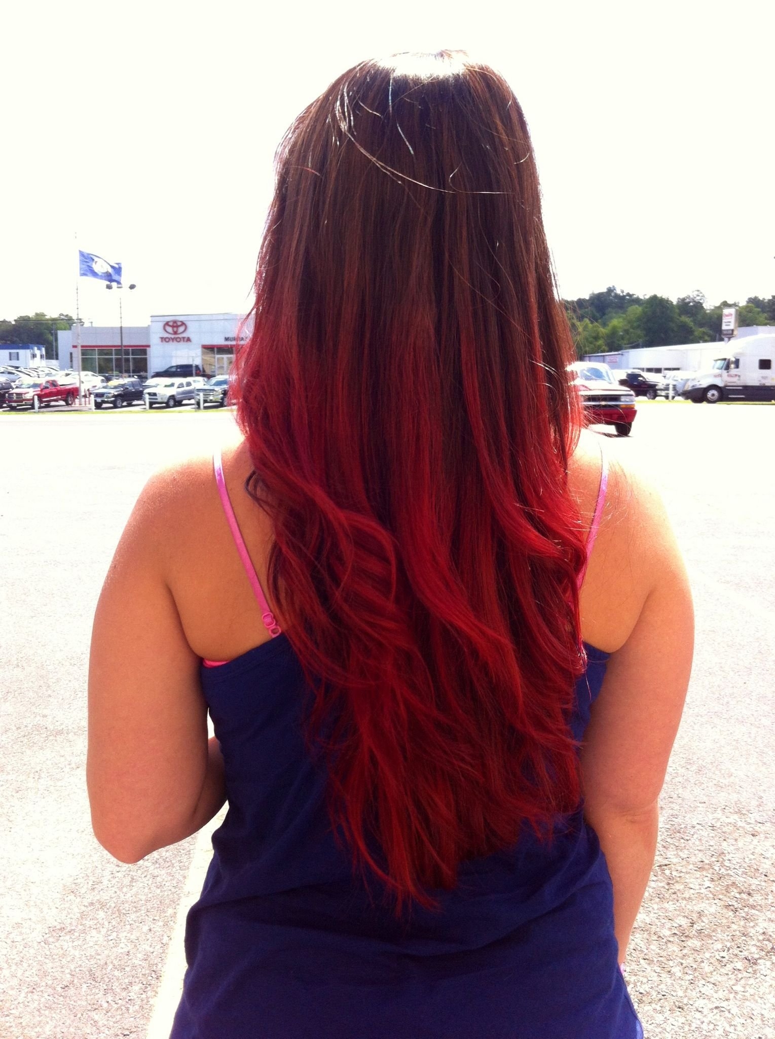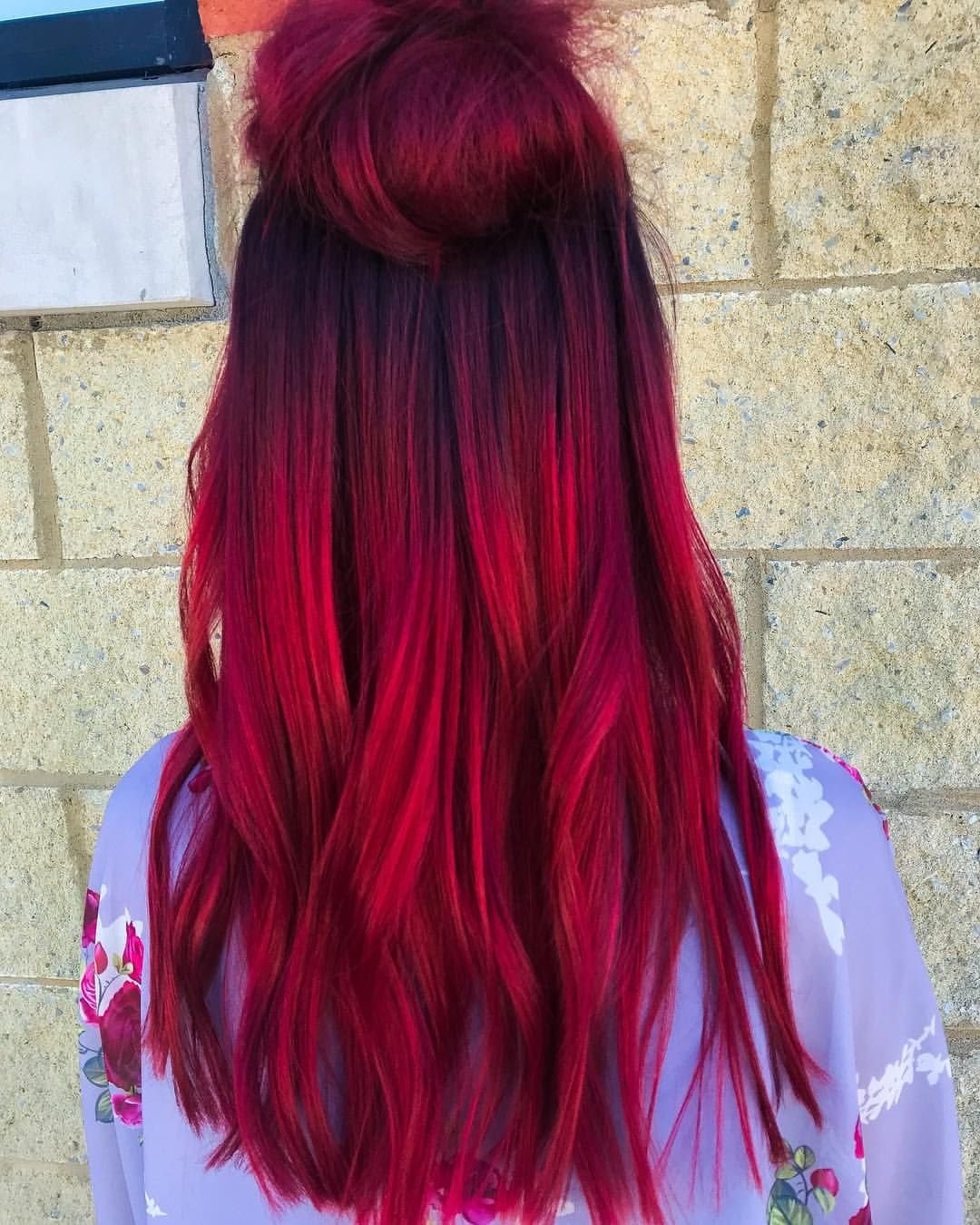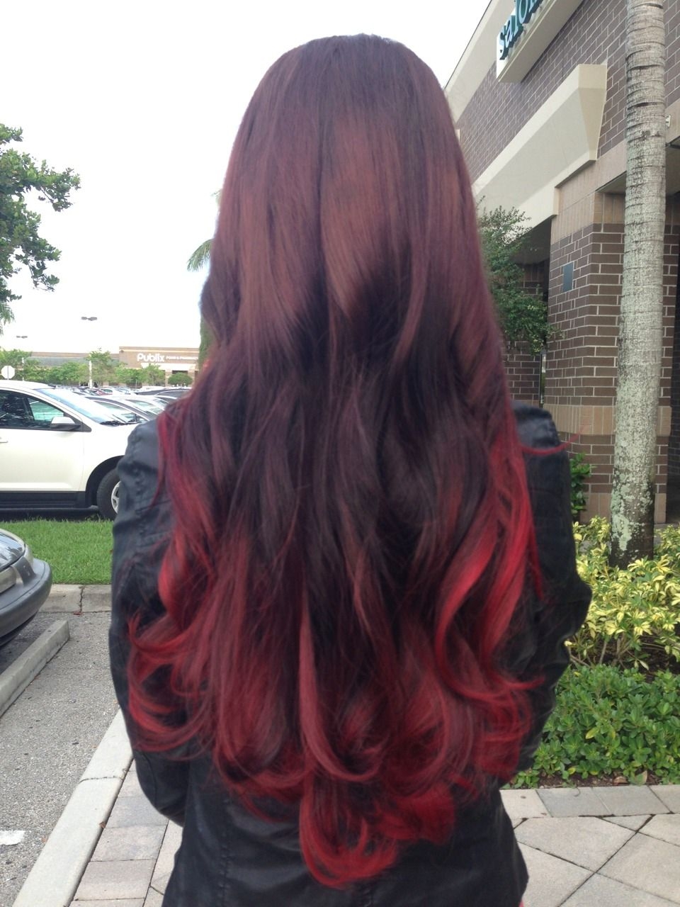Красное омбре на темные волосы длинные