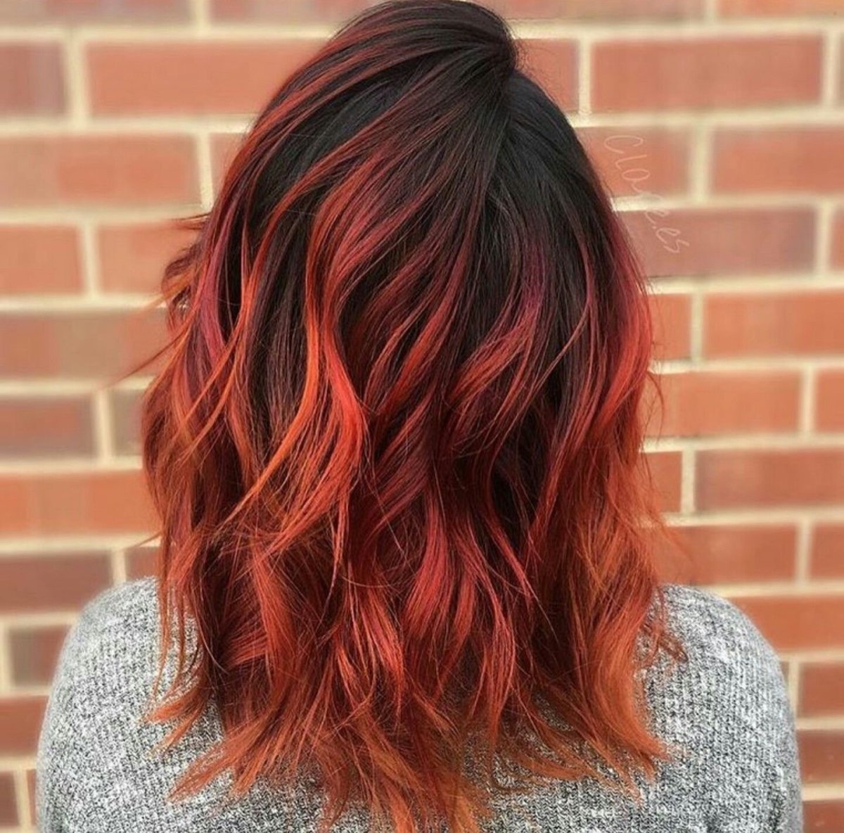 Красное омбре на темные волосы средней