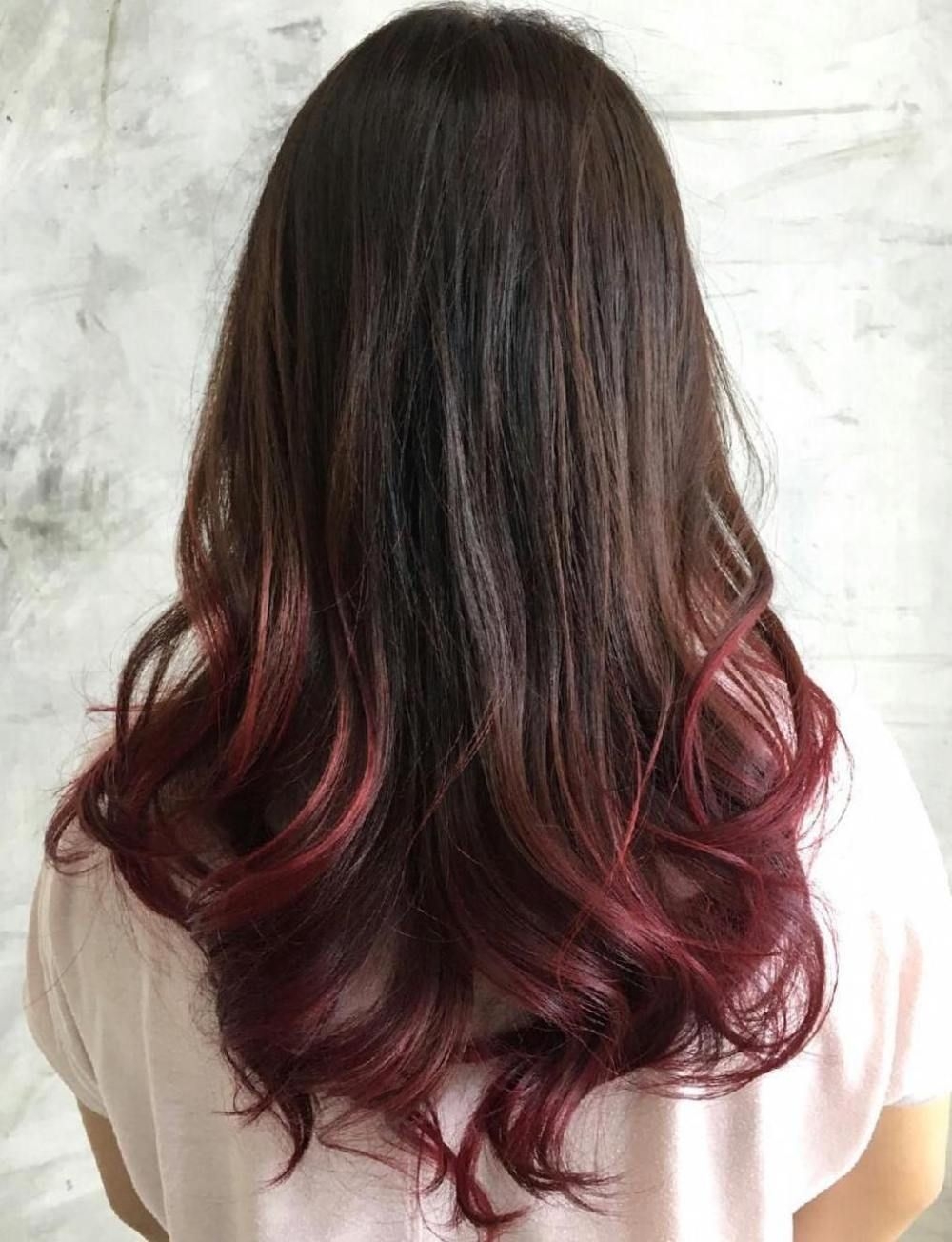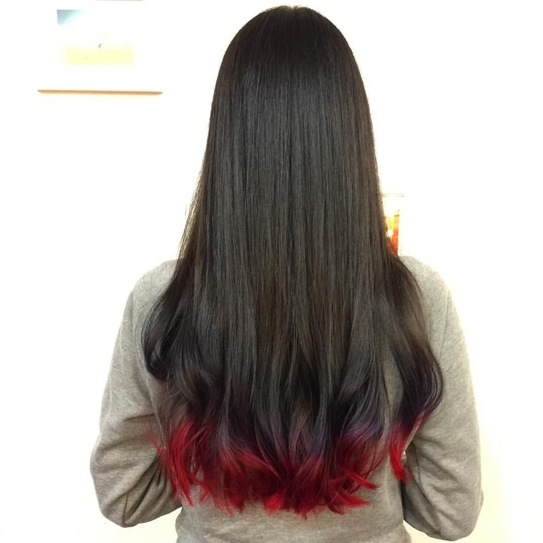 Красные кончики на темных волосах