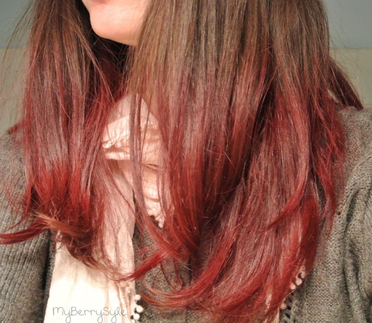 Красное омбре на коричневые волосы