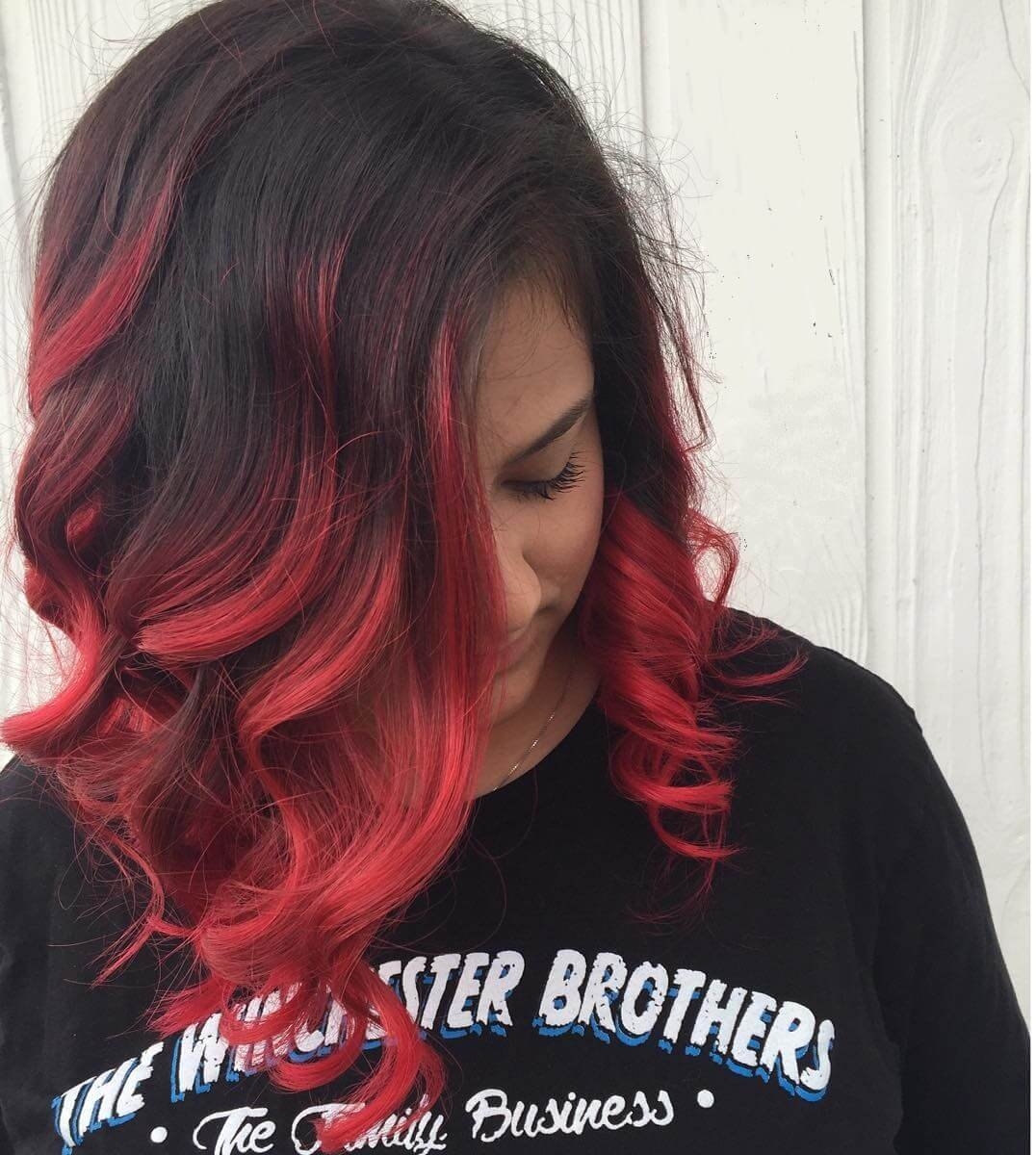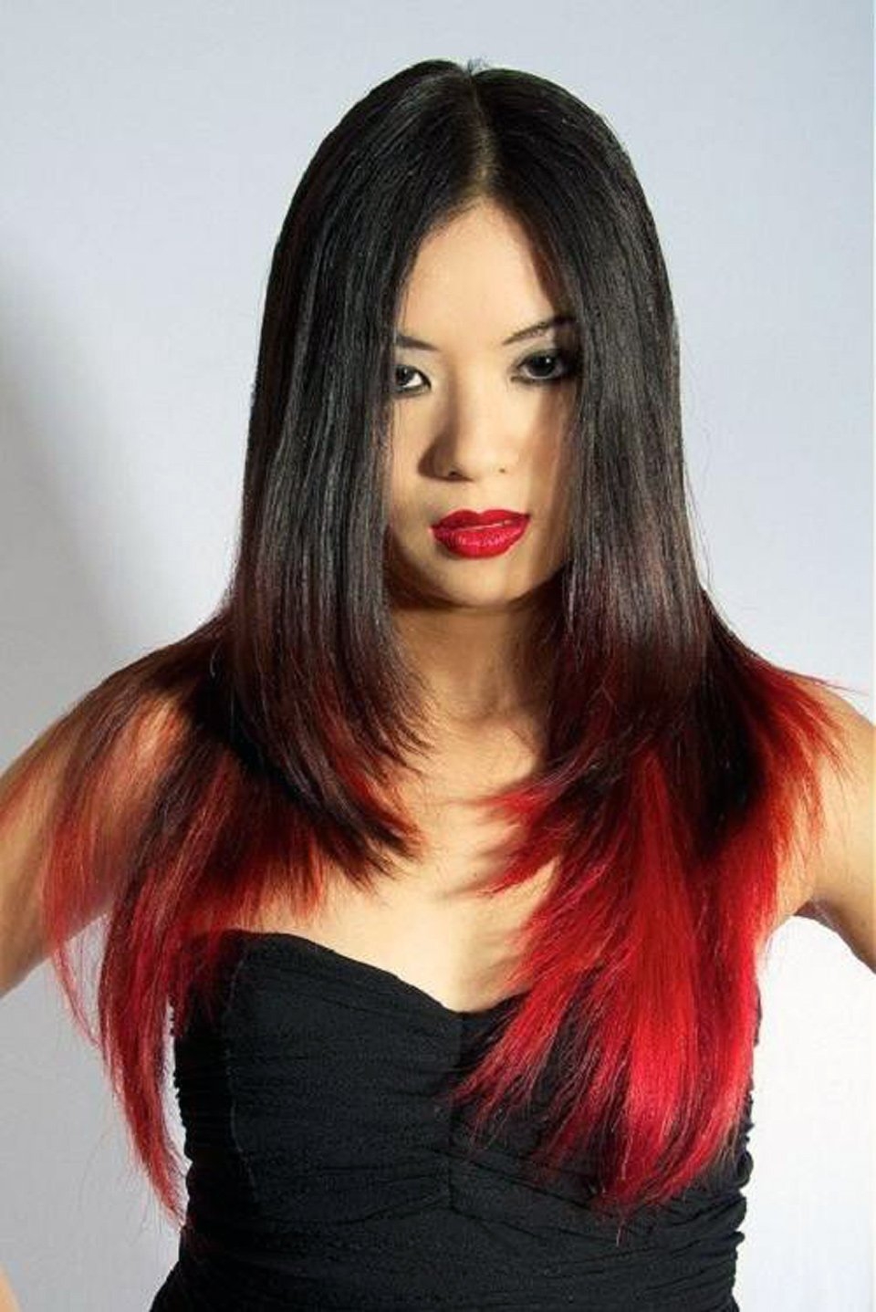 Чёрные волосы с красными концами